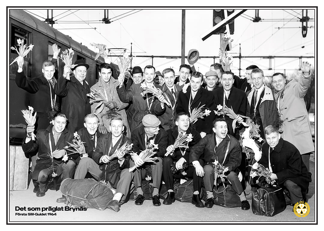 Inte alls. Men ledarna var generösa med att bre smörgåsar och brygga kaffe i den privata vagn som föreningen hade chartrat för resan upp till Skellefteå, och det var ingen hejd på guldglädjen. Faktum är att Brynäsgänget dansade jenka – en populär dans på den tiden – genom hela Norrlandspilen, vagn efter vagn. Konduktören hotade med att grabbarna skulle få kliva av tåget om de inte lugnade ner sig, men det gjorde de inte. I stället smittade glädjen av sig på övriga passagerare, och en efter en hängde de med i den galna dansen. Till och med den grinige konduktören hoppade med och tjoade.