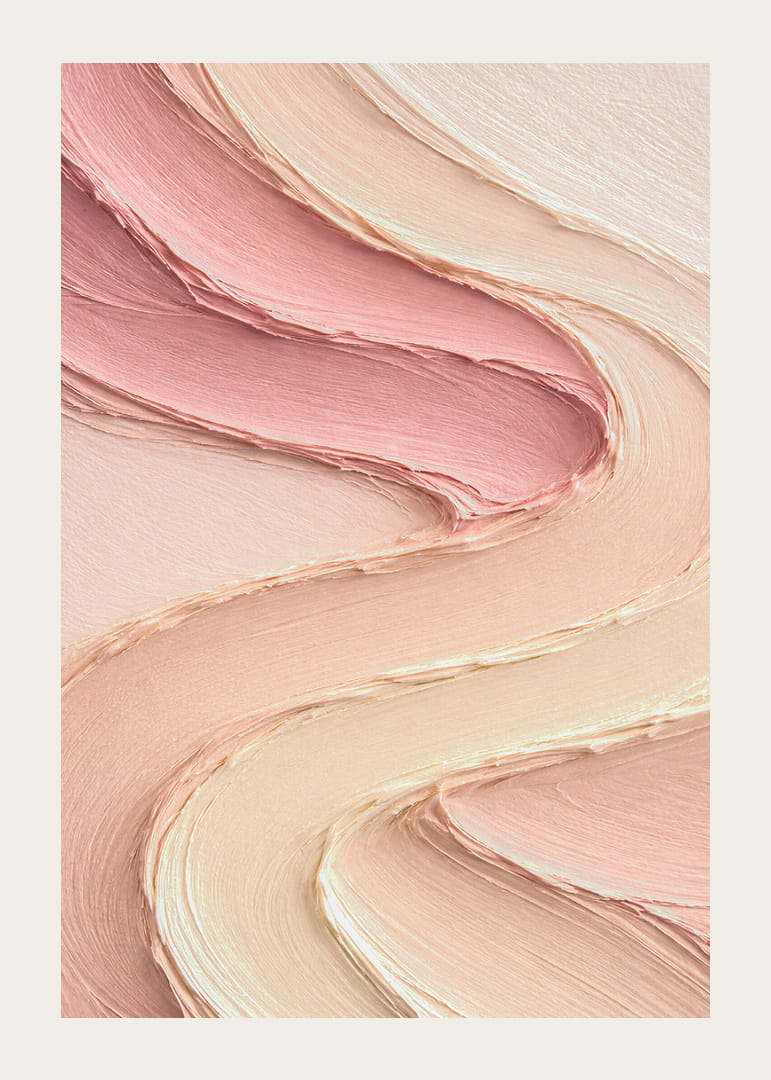 Denna poster fångar ögat med sina mjuka, svepande pastellvågor som flyter samman i en harmonisk dans. De subtila nyanserna av rosa och beige väcker en känsla av lugn och elegans. Idealisk för hemmets innersta rum, denna poster skapar en lugn atmosfär och tillför en touch av sofistikation. Ett vackert tillskott som gör varje rum till en fridfull oas.