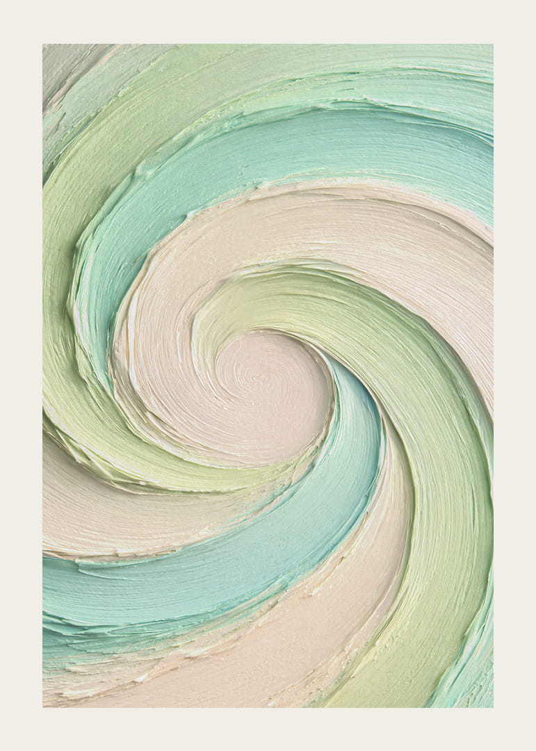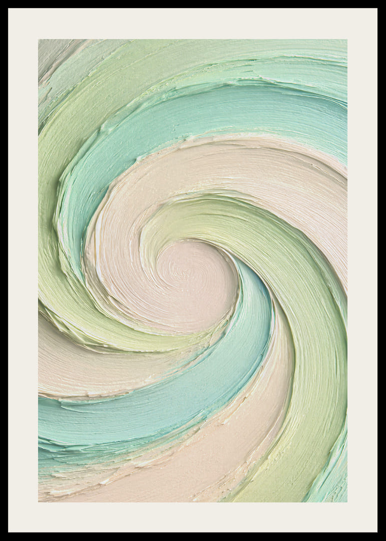 Den här postern fångar direkt blicken med sina mjuka virvlar av harmoniska pastelltoner. De subtila nyanserna av grönt och beige bildar en hypnotisk rörelse som skänker lugn och elegans till rummet. Med sin abstrakta och drömska känsla blir postern ett lugnande inslag, perfekt för att skapa en behaglig och avslappnad atmosfär i varje hem. Den tillför både stil och rofylldhet.