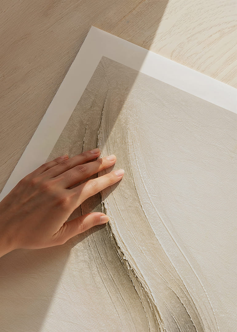 Denna poster fångar ögat med sina mjuka, svepande linjer som skapar en känsla av stillhet och elegans. De subtila nyanserna i beige och vitt flödar samman till ett harmoniskt formspråk, vilket bringar en fridfull atmosfär till varje rum. Genom sin stilrena enkelhet blir denna poster ett perfekt tillskott i hemmet och förstärker rummet med en sofistikerad charm som är tidlös.