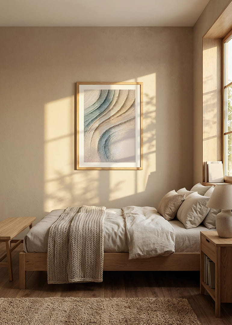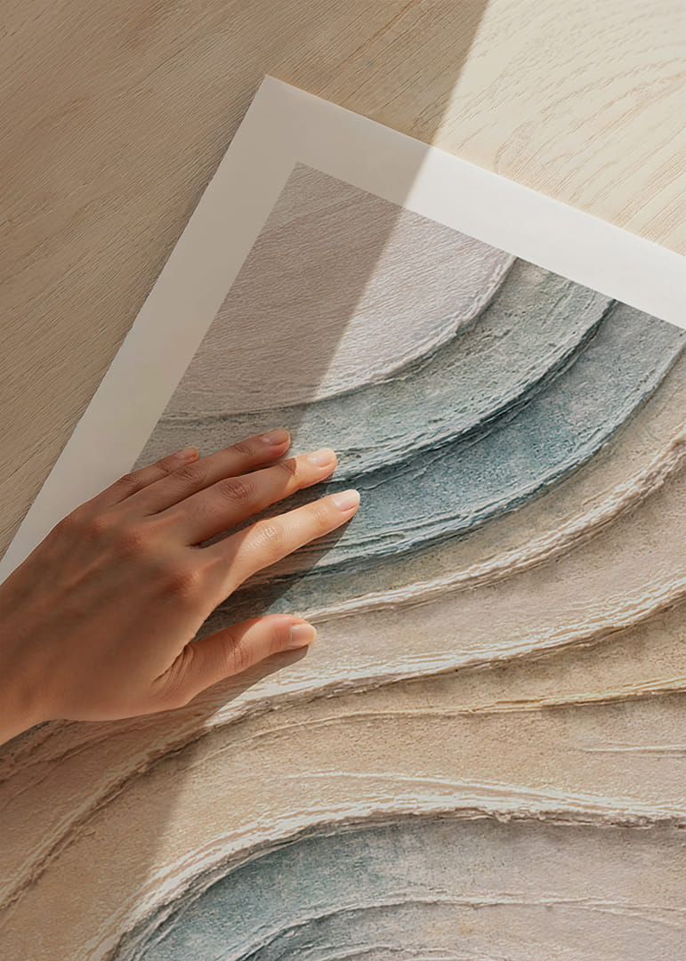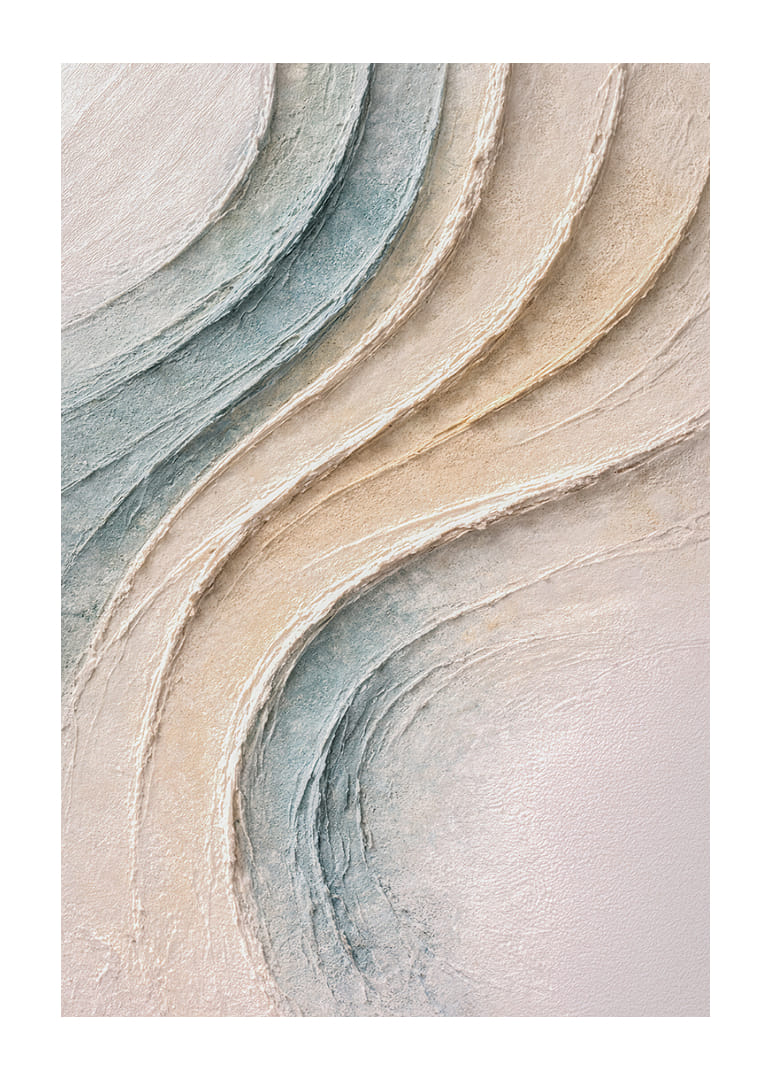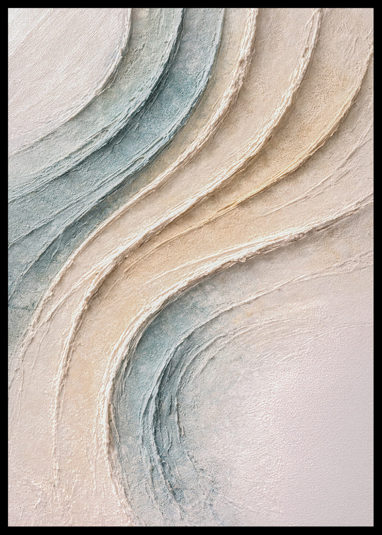 Denna poster fångar ögat med sina mjuka, böljande former och milda pastelltoner som påminner om lugna sanddyner eller mjuka havsvågor. Den fängslande strukturen och de subtila nyanserna skapar en känsla av ro och balans. Placera denna poster i ditt vardagsrum för att tillföra rummet en känsla av harmoni och förnya dess visuella och emotionella uttryck, vilket skapar en fridfull atmosfär.