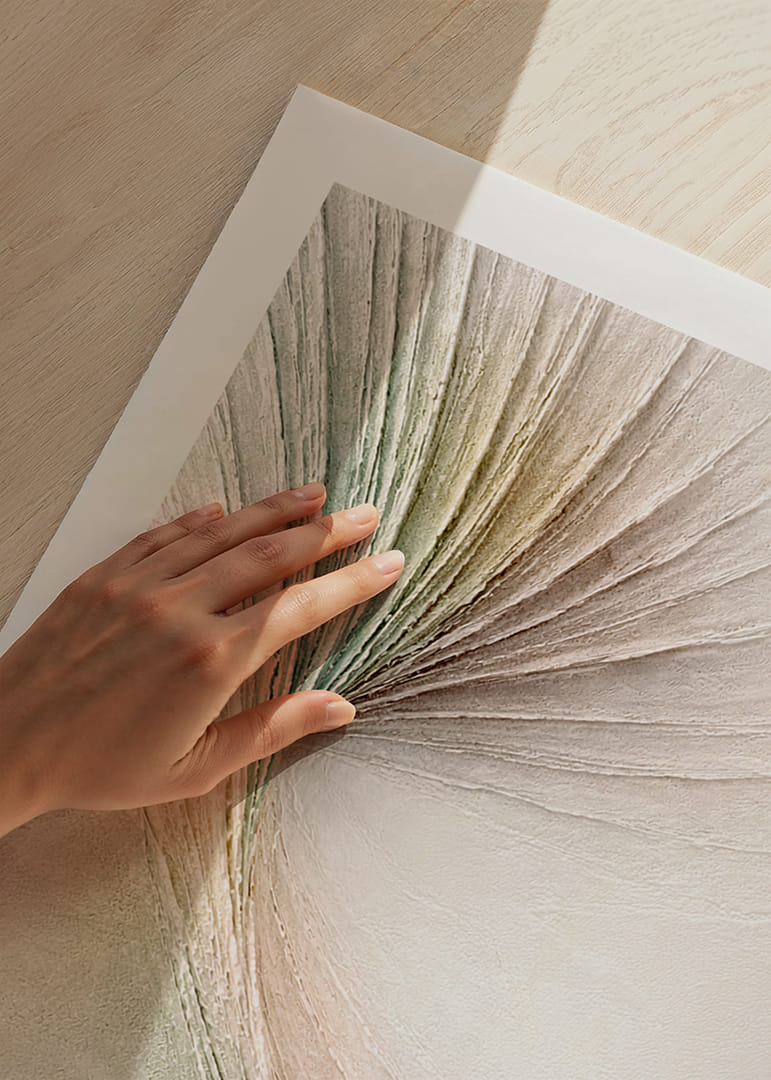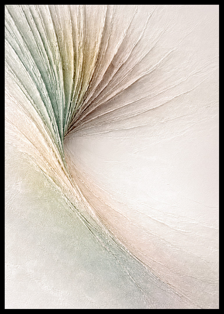 Denna poster fångar ögat med en mjuk och elegant virvel av subtila pastellfärger som skapar en känsla av lugn och harmoni. De böljande linjerna dansar i en spiralform, vilket ger en drömliknande och eterisk atmosfär. Med sin stilrena och sofistikerade design kan denna poster förvandla vilket rum som helst till en modern och fridfull reträtt, perfekt för att skapa en avkopplande stämning hemma.