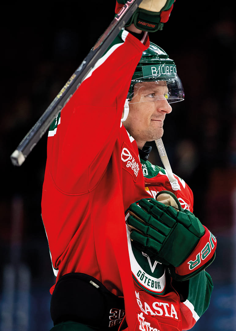 Frölundas Nicklas Lasu tackar publiken när han hyllas för sina 1000 matcher för klubben efter ishockeymatchen i SHL mellan Frölunda och Leksand den 10 januari 2026 i Göteborg.