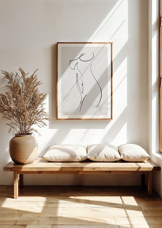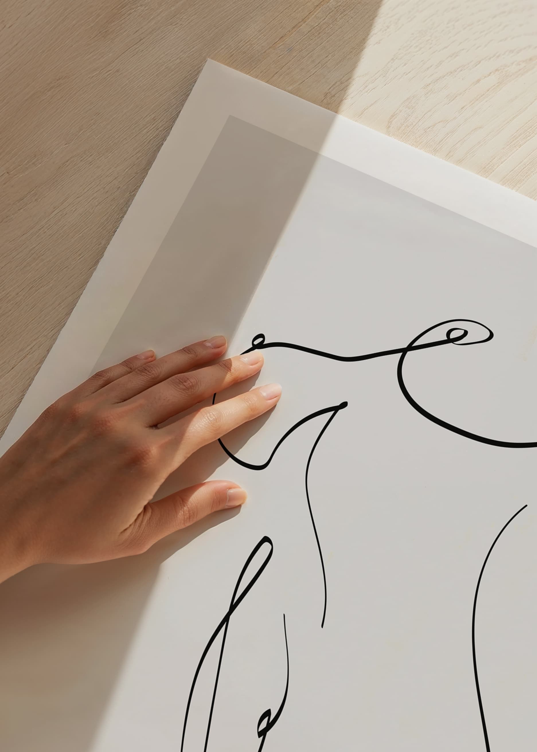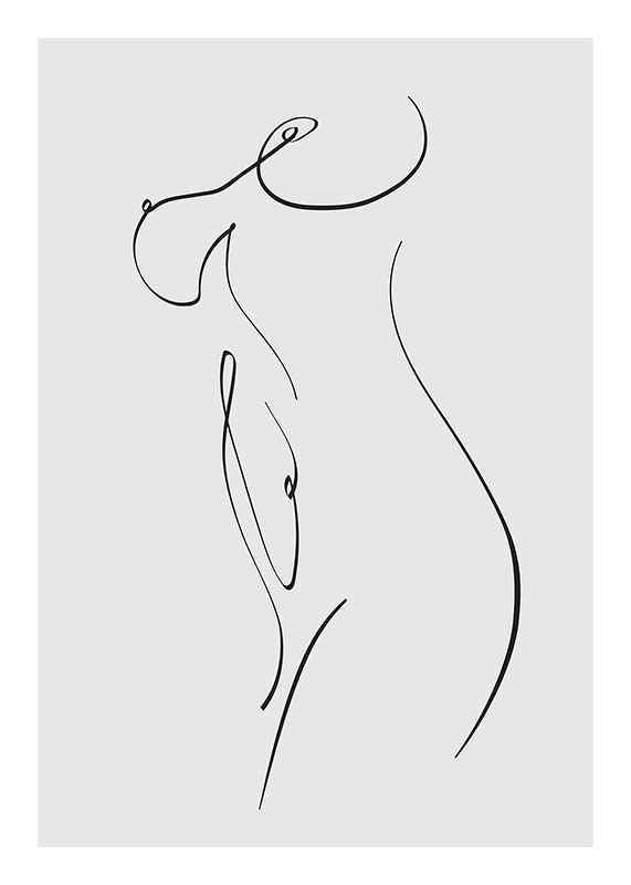 Svartvit poster med line art illustration av en kvinnlig kropp framifrån.