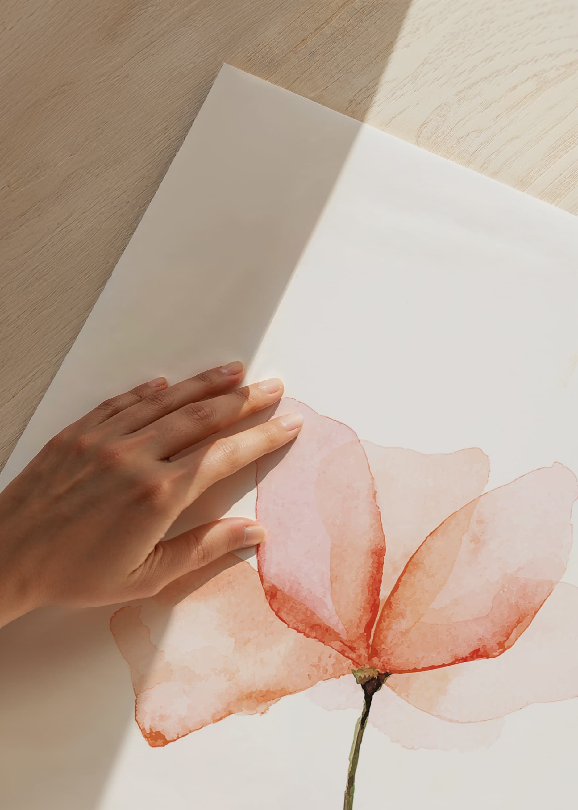 Ett elegant och mjukt motiv som förmedlar skönhet, stillhet och naturens sköra poesi. Denna poster visar en rosa blomma vars blad målats med akvarellens lätta penseldrag – en konstnärlig tolkning som fångar både detaljrikedom och känsla. Perfekt för att skapa en lugn och romantisk atmosfär i sovrum, hall eller vardagsrum. En del av vår kollektion med botaniska posters – där naturlig skönhet möter tidlös design.