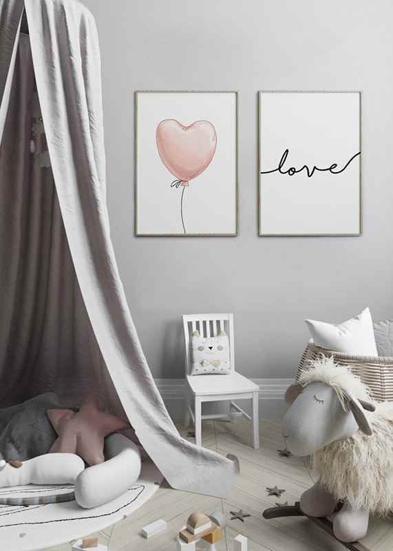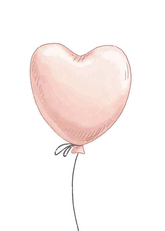 Söt poster till barnrummet med skiss av en hjärtformad rosa ballong.