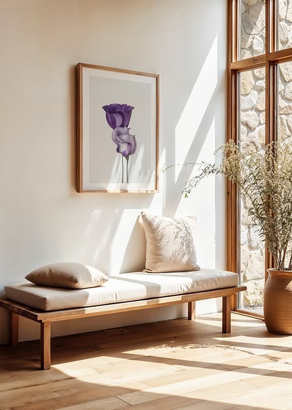 Poster med målning i vattenfärg av två vackra lila blommor.
