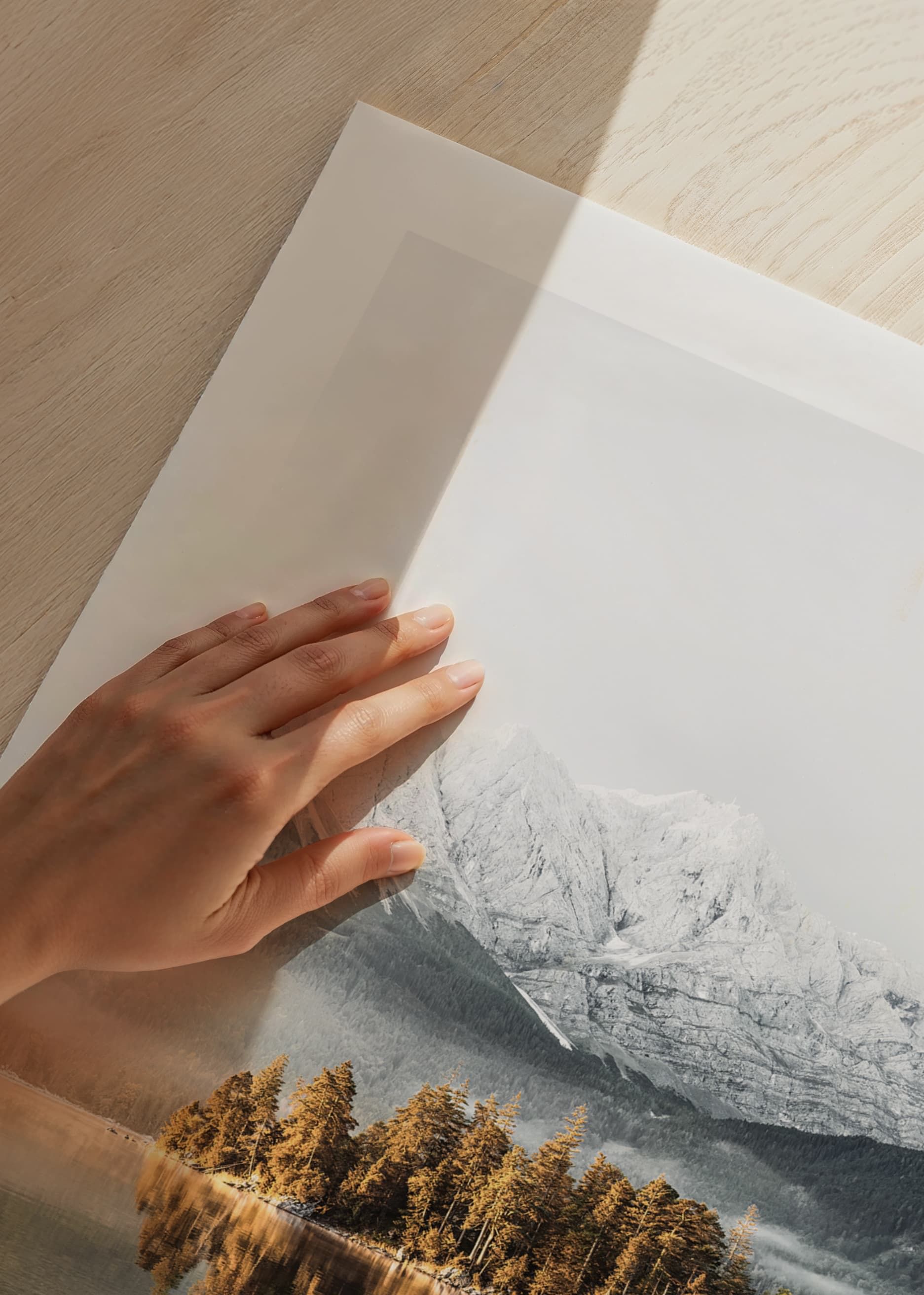 Vi trycker våra posters på 200 grams matt papper av högsta kvalitet från det franska pappersbruket Clairefontaine. Pappret är miljöcertifierat FSC och produktionen Svanen/EU Ecolabel-märkt.