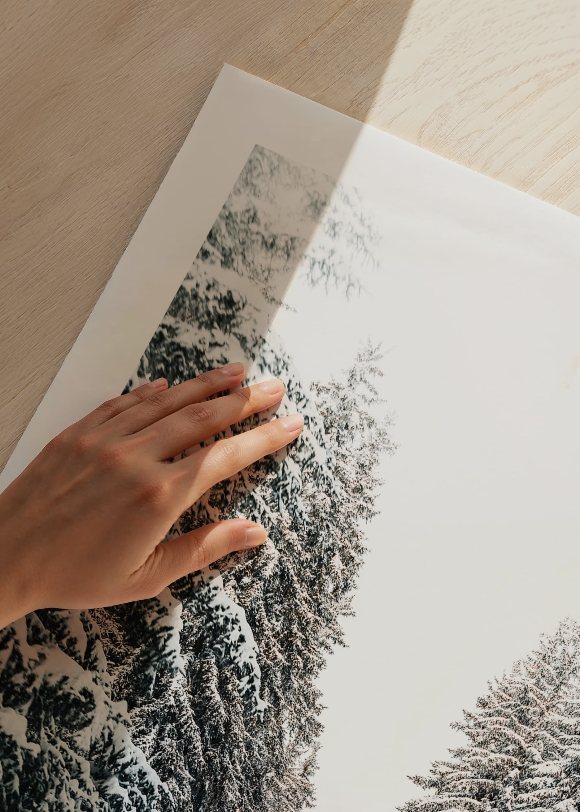 Vi trycker våra posters på 200 grams matt papper av högsta kvalitet från det franska pappersbruket Clairefontaine. Pappret är miljöcertifierat FSC och produktionen Svanen/EU Ecolabel-märkt.