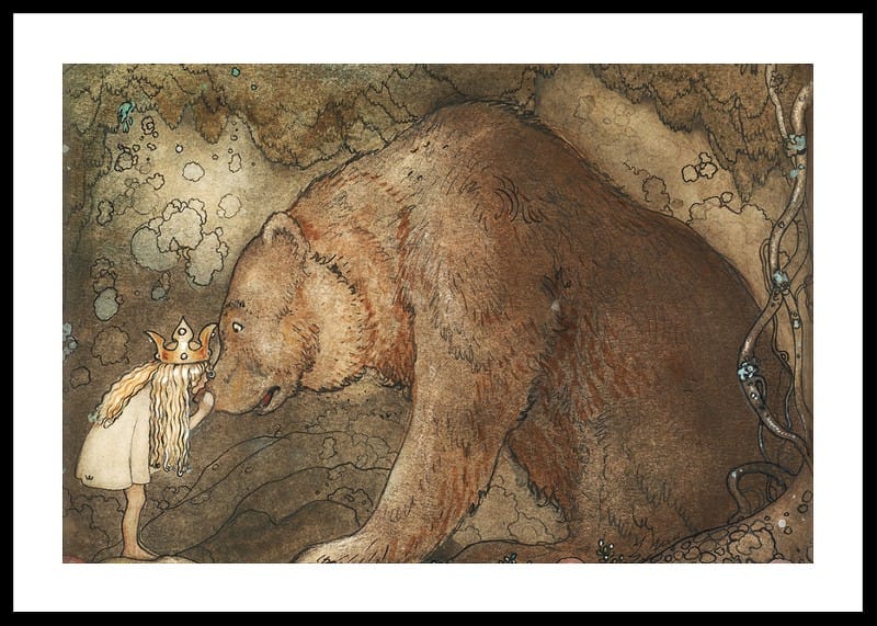 Poster med målningen "Stackars lilla Basse" av John Bauer från år 1912.
