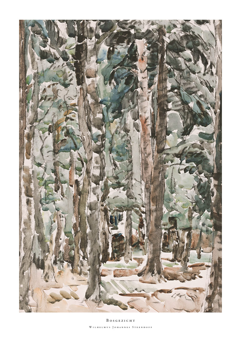 Poster med målningen "Bosgezicht" av den nederländske konstnären Wilhelmus Johannes Steenhoff (1863-1932).