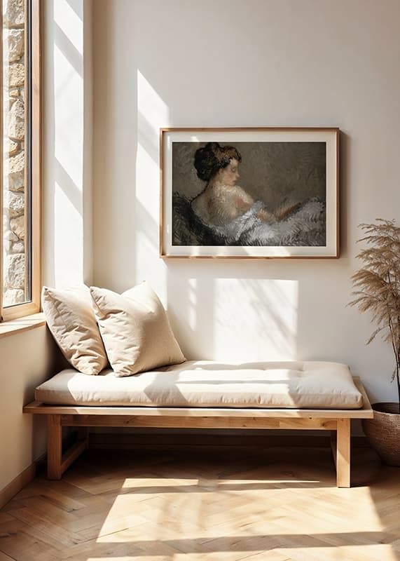 Poster med målningen "Figure Crouching" av konstnären Isidro Nonell från år 1908. Isidro Nonell (1873-1911) var en spansk målare som mestadels skapade landskapsmålningar. Han föddes i Barcelona och studerade vid Escuela de Bellas Artes. Han vann flera prestigefyllda priser och utmärkelser, och hans målningar har visats i olika museer och utställningar runt om i världen.