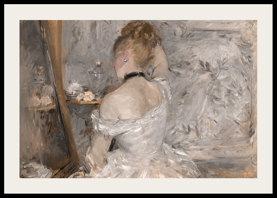 Poster med målningen "Woman At Her Toilette" av konstnären Berthe Morisot från år 1875-1880. Berthe Morisot var en fransk konstnär, född 1941, som tillhörde den så kallade Impressionismen. Hon inspirerades av de målare som föregick henne, som Corot, Courbet och Manet. Bland hennes mest kända verk finns bilder som "Le Balcon", "Le Berceau" och "L'Embarquement pour Cythère". Hon var en av de första kvinnorna som fick utställningar på populära gallerier och museer och har fått stor uppskattning för sina verk. Hon har även inspirerat andra konstnärer, framför allt kvinnorna, att utforska konstvärlden med sina egna visioner och idéer. Hon dog i 1895, men hennes arbete lever vidare och kommer att inspirera konstnärer i generationer framöver.