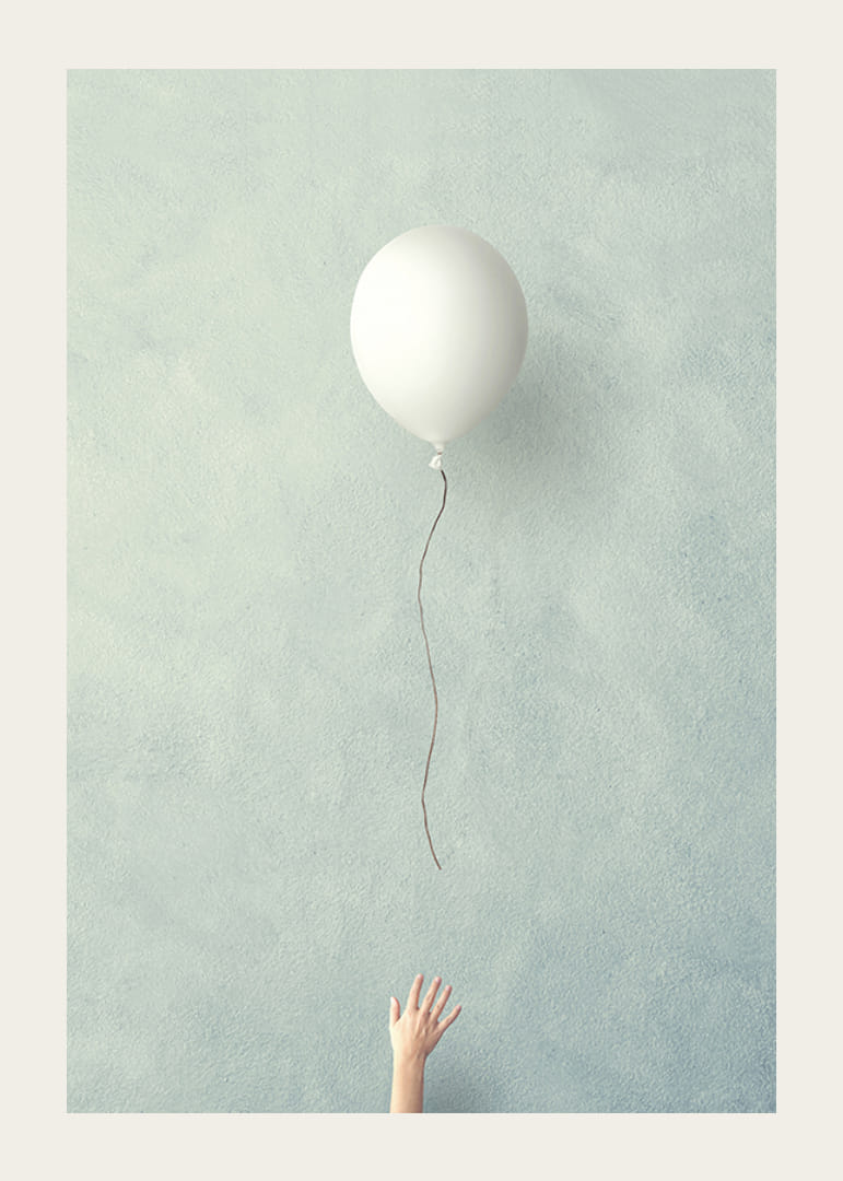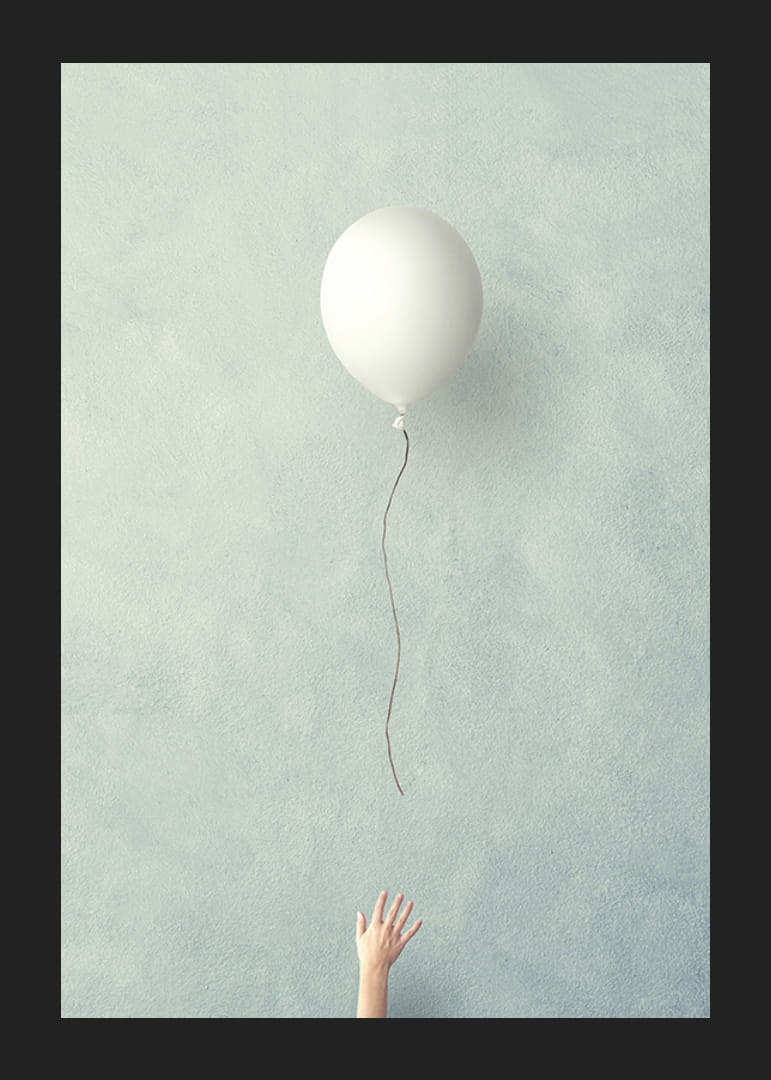 Motivet består av en vit ballong som sakta svävar uppåt mot en enfärgad ljusblå bakgrund. Längst ner i bild syns en utsträckt hand som just släppt taget om snöret. Det stilrena och luftiga uttrycket gör postern till ett subtilt inslag i barnrum eller andra rum där en känsla av frihet och lätthet får ta plats.