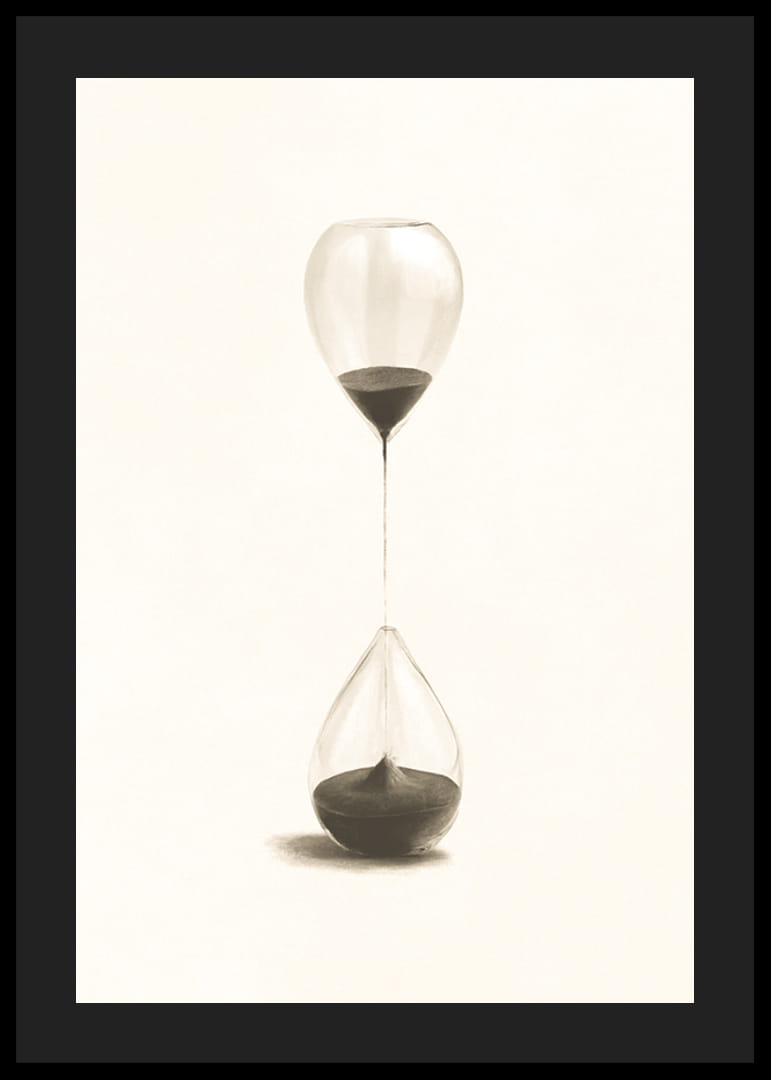 Motivet består av ett timglas där båda glasbehållarna har formen av genomskinliga ballonger, sammanlänkade av ett smalt stråk av rinnande sand. Den ljusa bakgrunden och dämpade färgskalan ger motivet ett luftigt och grafiskt uttryck. Denna poster tillför ett konceptuellt inslag till moderna rum.