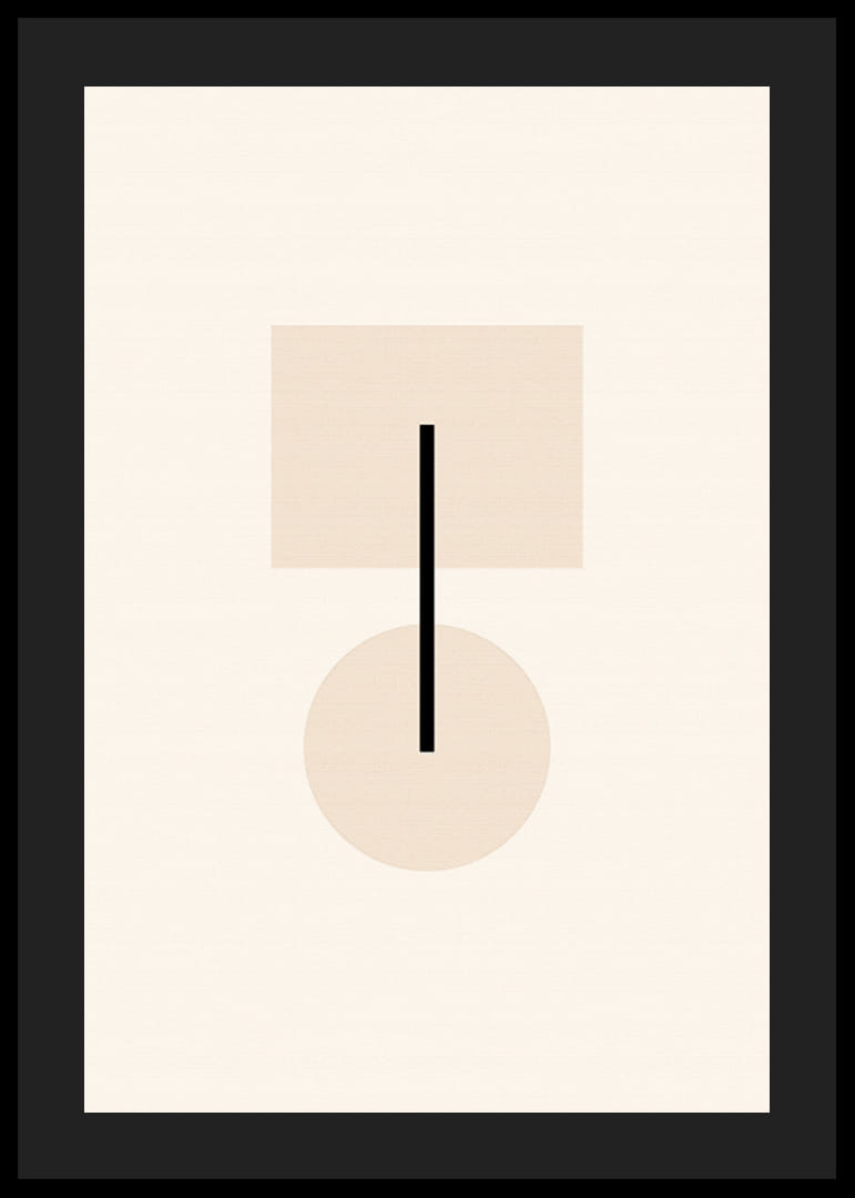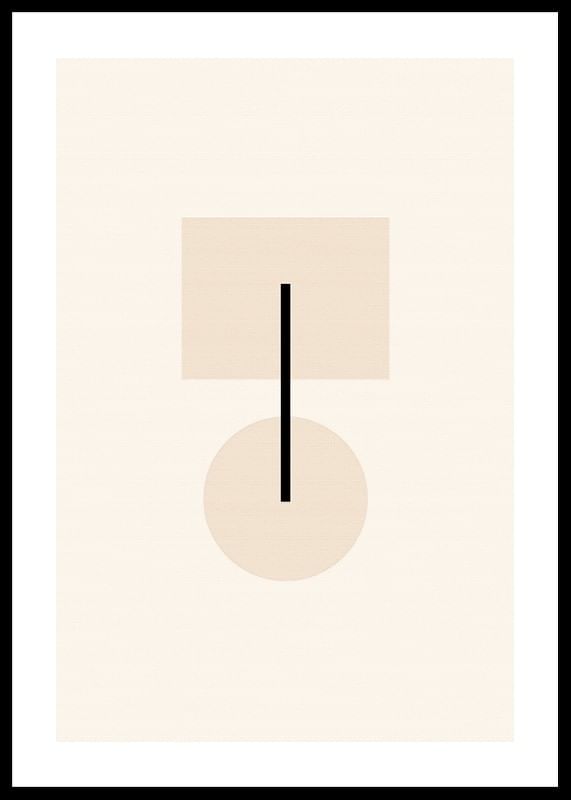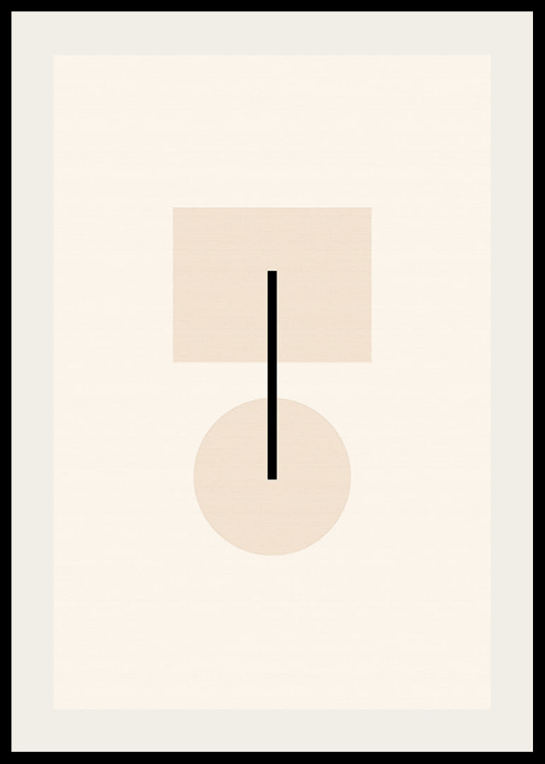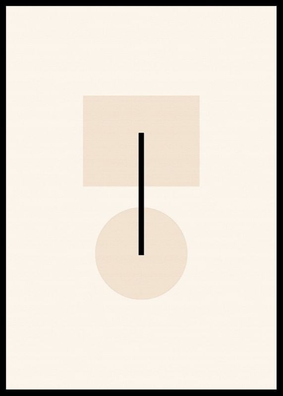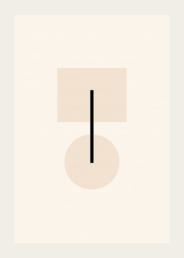 Motivet består av en beige fyrkant och en cirkel som förenas av en tunn, svart vertikal linje. Enkelheten och de mjuka tonerna skapar en modern känsla med grafisk tydlighet. Denna poster passar bra i minimalistiska miljöer där ett subtilt och rent uttryck eftersträvas.