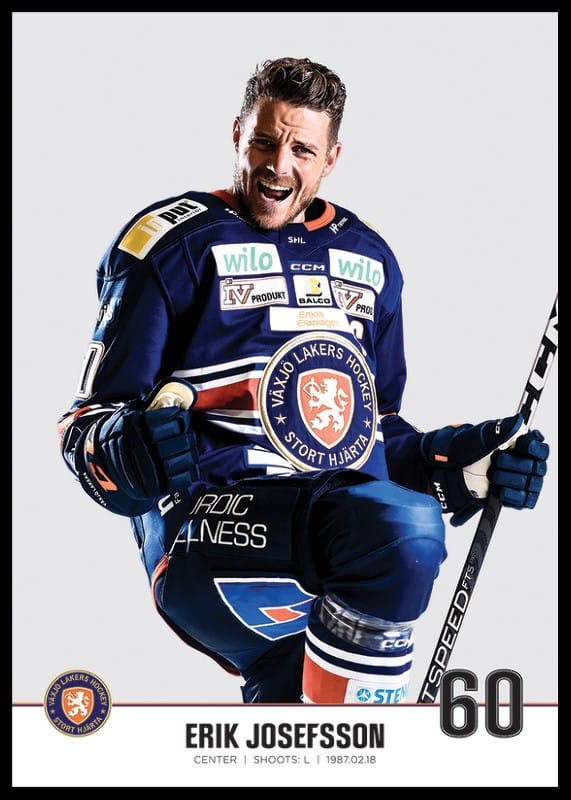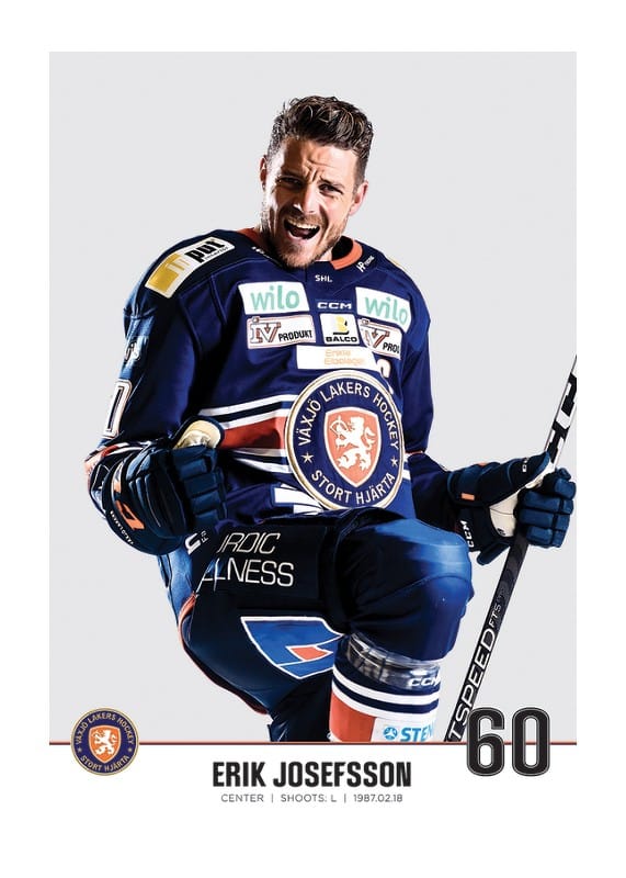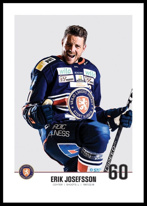 Poster med spelarbild på Växjö Lakers center Erik Josefsson med tröjnummer 60 från säsongen 2022/2023.