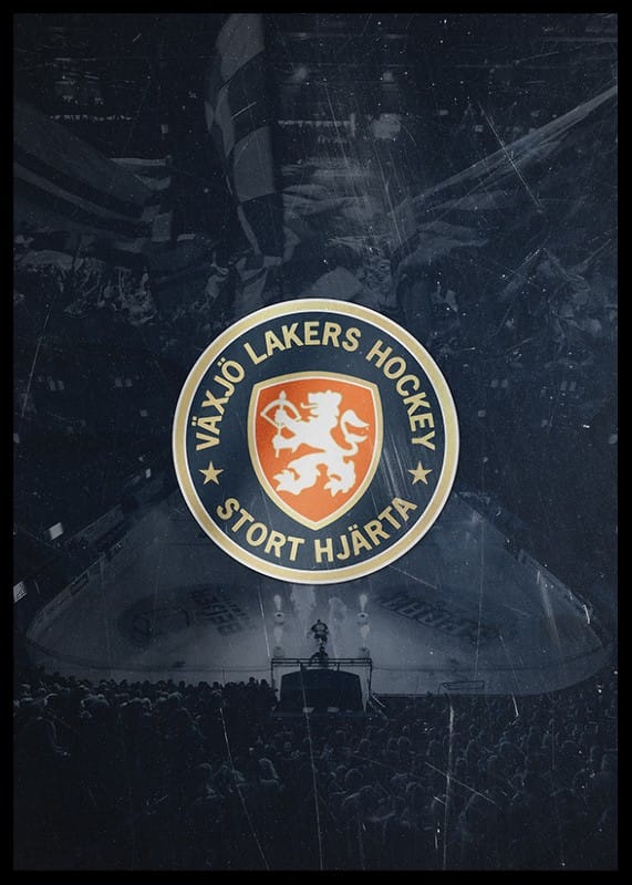 Poster med Växjö Lakers logga mot en blå profilbakgrund.