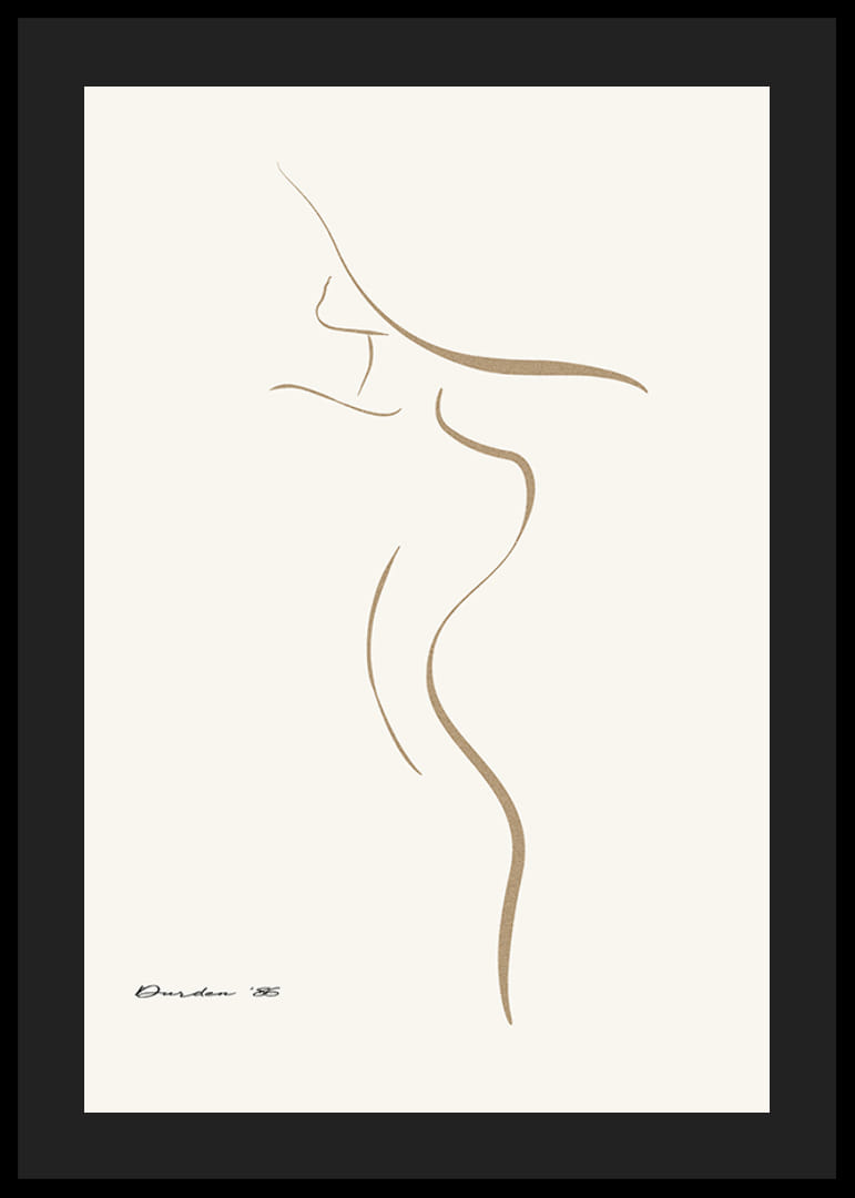 Mjuka, svepande linjer bildar en stiliserad siluett av en kvinnokropp mot en ljusbeige bakgrund. Den minimalistiska kompositionen och de varma, neutrala färgerna skapar ett subtilt och modernt uttryck. Postern passar fint i rum där lugn och enkel estetik önskas, till exempel sovrum eller vardagsrum.