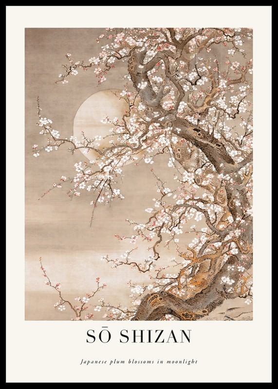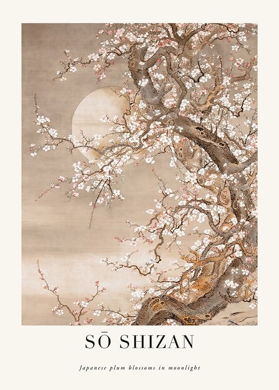 Blossoming Cherry On A Moonlit Night By Ohara Koson Poster