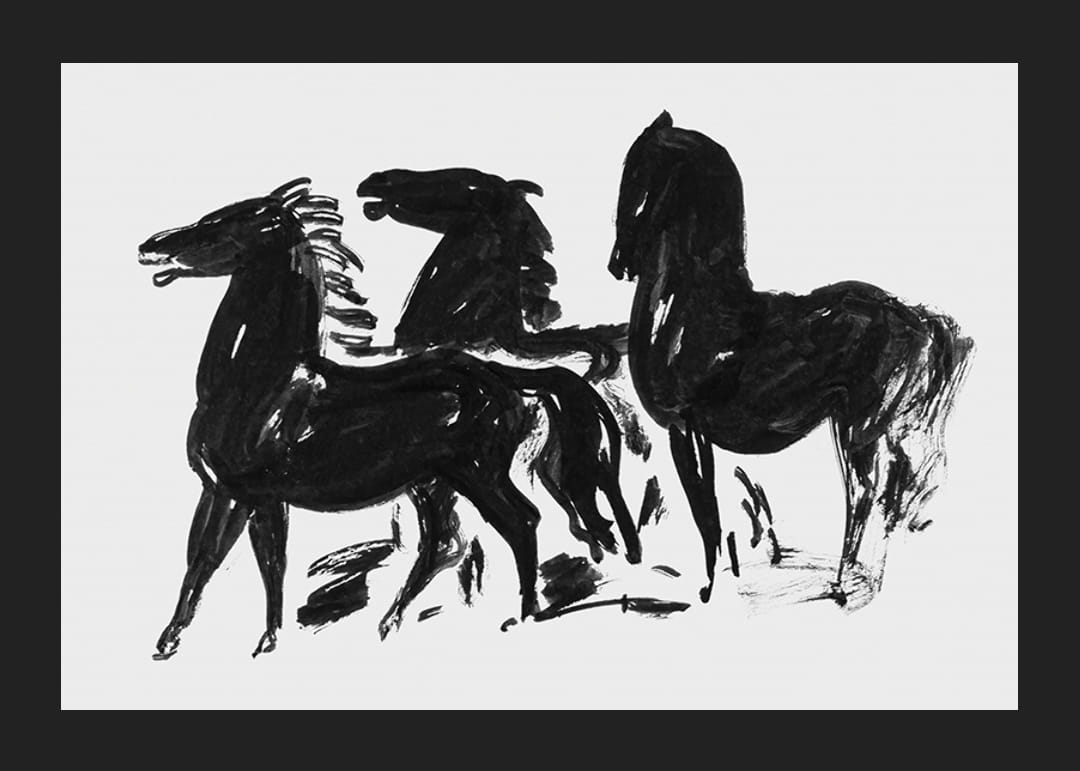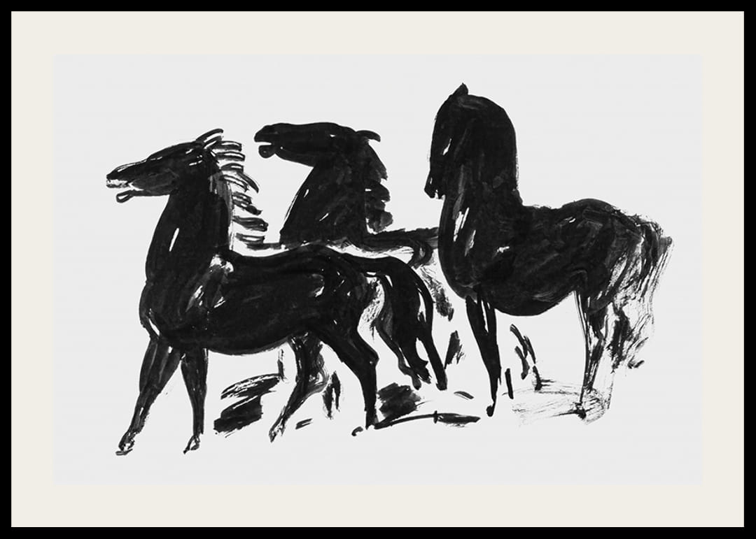 Drie Zwarte Paarden Staand Naar Links Kijkend By Leo Gestel
