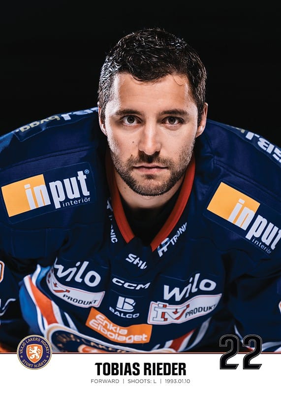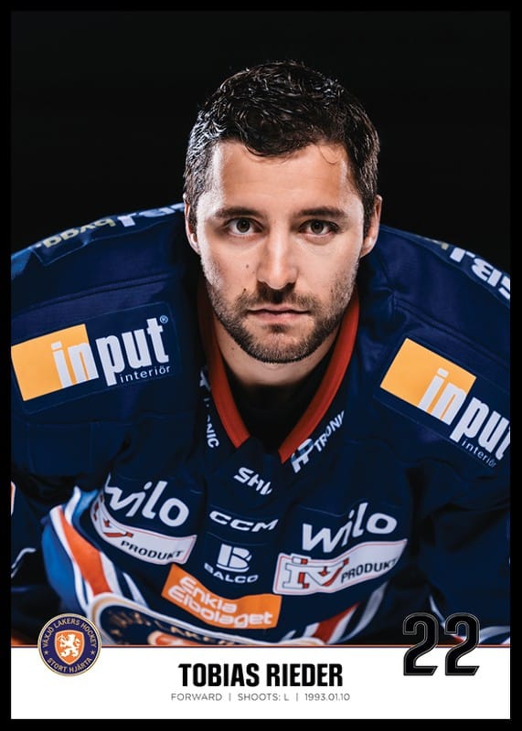 Poster med spelarbild på Växjö Lakers forward Tobias Rieder med tröjnummer 22 från säsongen 2023/2024.