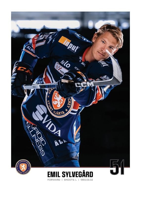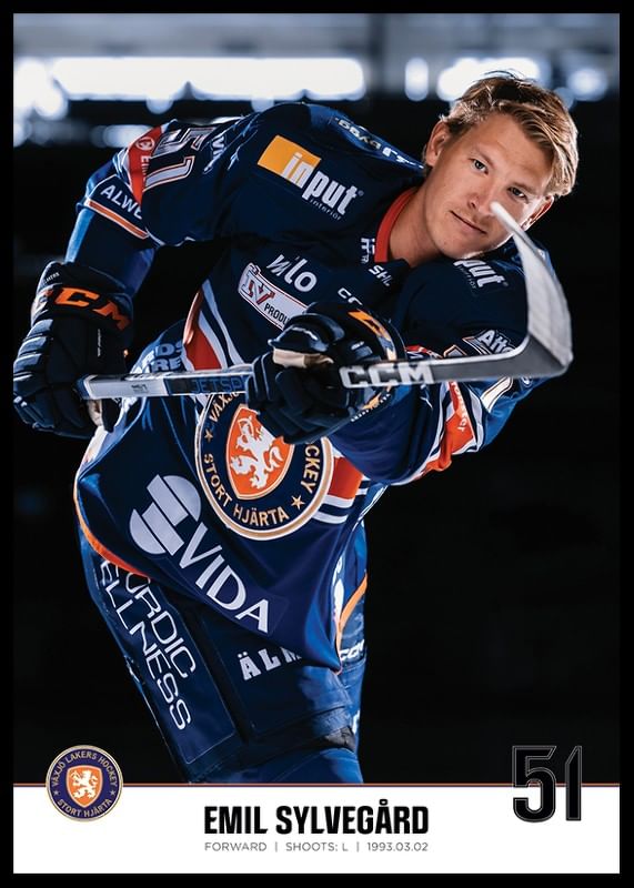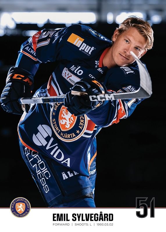 Poster med spelarbild på Växjö Lakers forward Emil Sylvegård med tröjnummer 51 från säsongen 2023/2024.