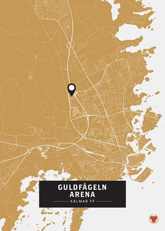 Stilren poster från kategorin Kalmar FF med motiv Kalmar FF Guldfågeln Arena Karta Guld