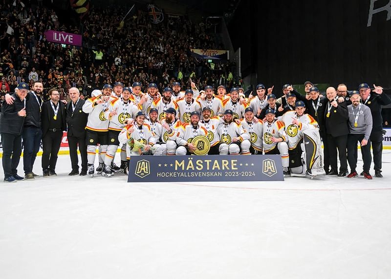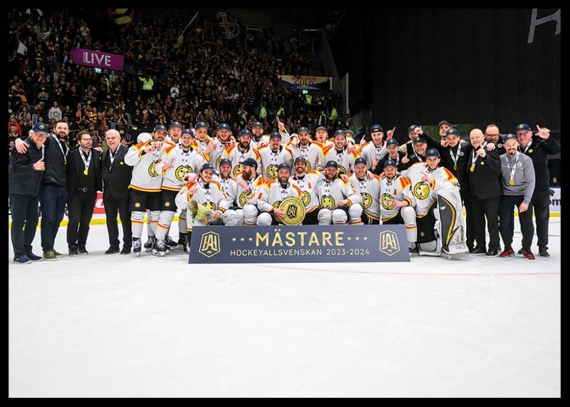 Segrana Brynäs i HockeyAllsvenskan 2024 efter matchen i HockeyAllsvenskan Final mellan Djurgården och Brynäs i Hovet den 23 april i Stockholm