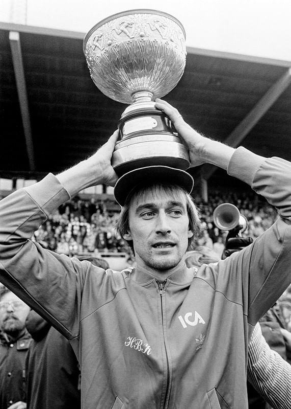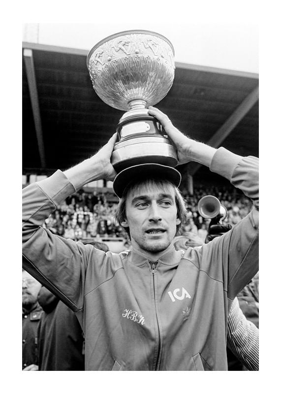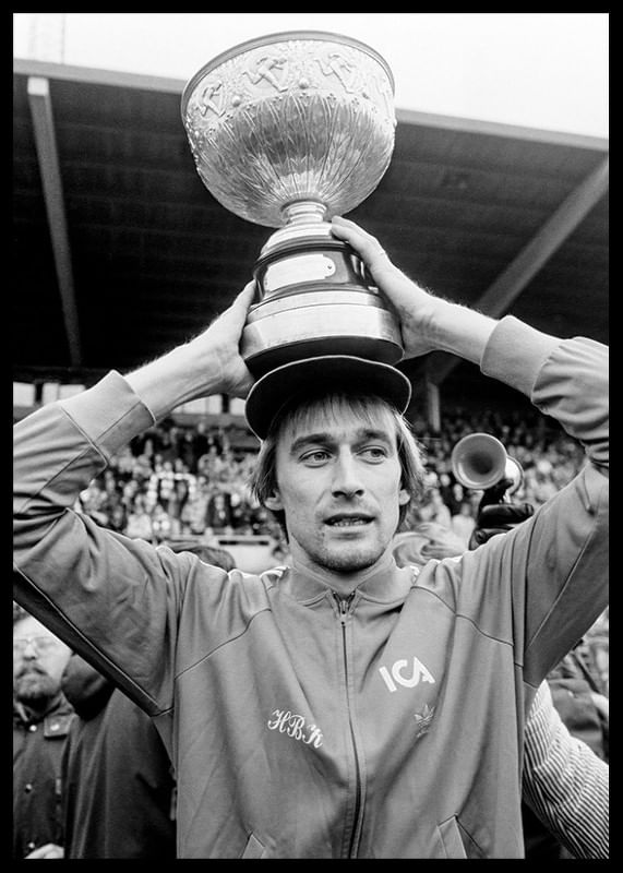 Halmstad - AIK: Halmstad BK, svenska mästare. Rutger Backe efter segern.