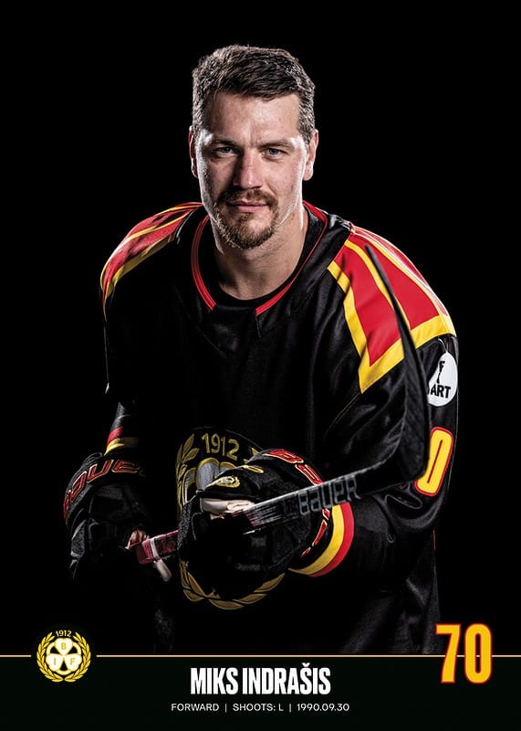 Stilren poster från kategorin Brynäs IF med motiv Miks Indrašis #70 Brynäs IF 2023/2024