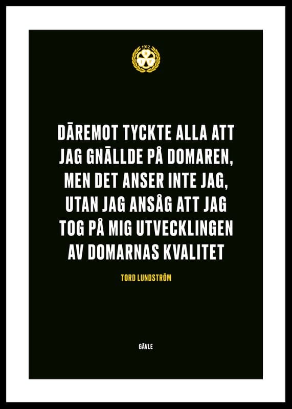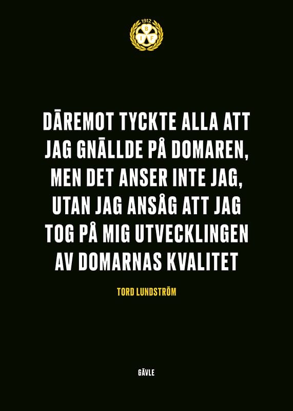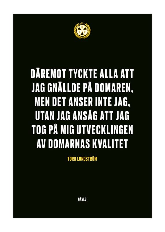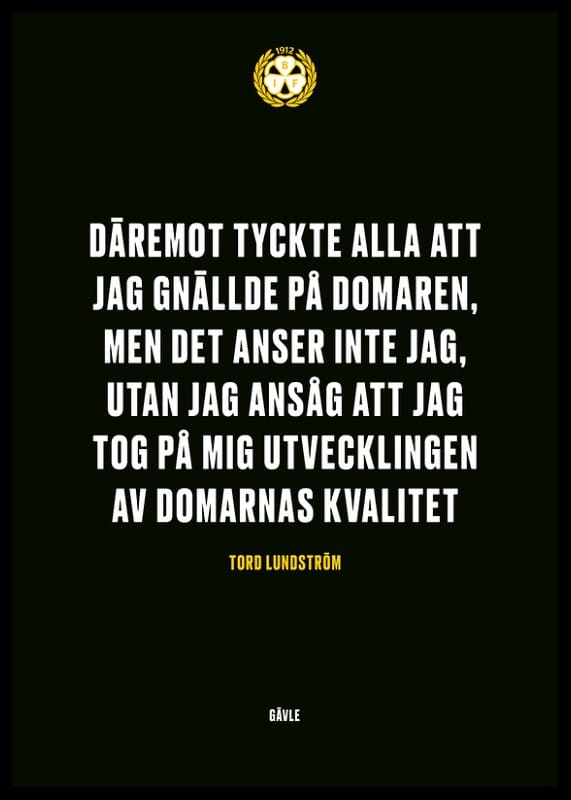 Citat: "Däremot tyckte alla att jag gnällde på domaren, men det anser inte jag, utan jag ansåg att jag tog på mig utvecklingen av domarnas kvalitet" av Tord Lundström ikonisk ishockeyspelare i Brynäs IF med 9 SM-guld.