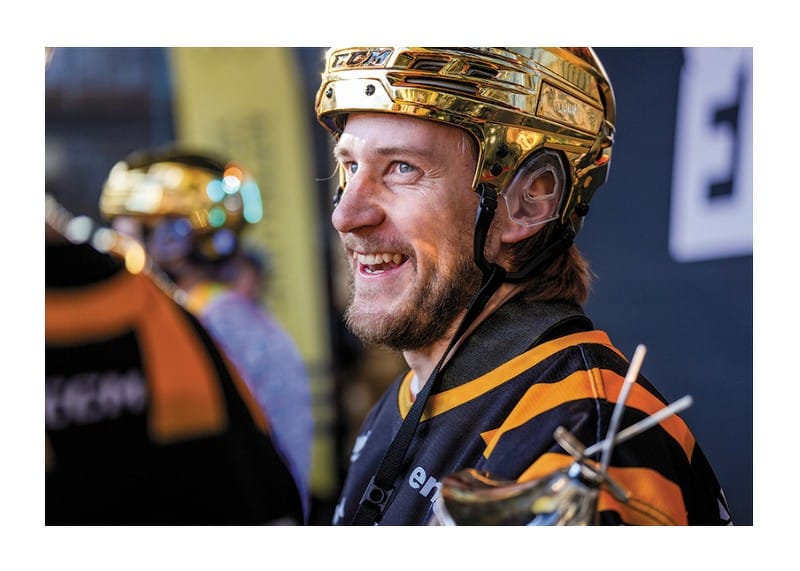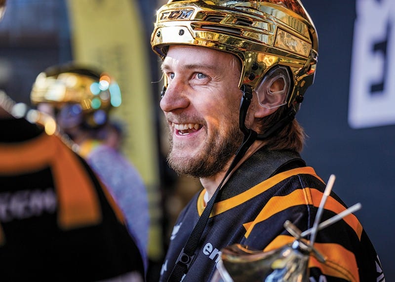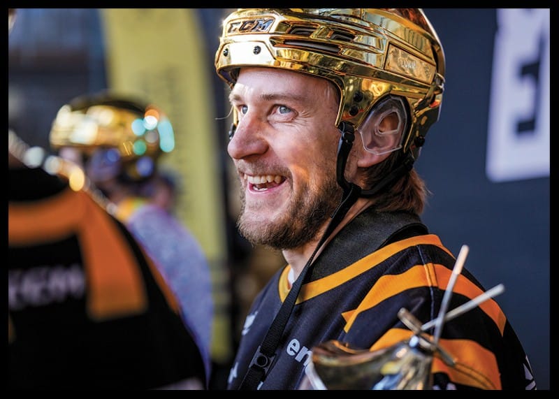 Skellefteås Jonathan Pudas under guldhyllningar av Skellefteå efter SM-guldet den 30 april 2024 i Skellefteå.