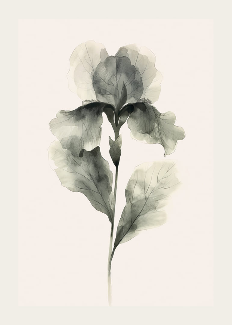 Poster med en akvarellmålning av en blomma i vackra gröna nyanser.