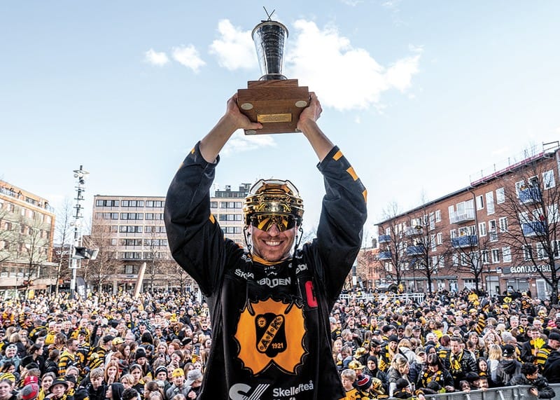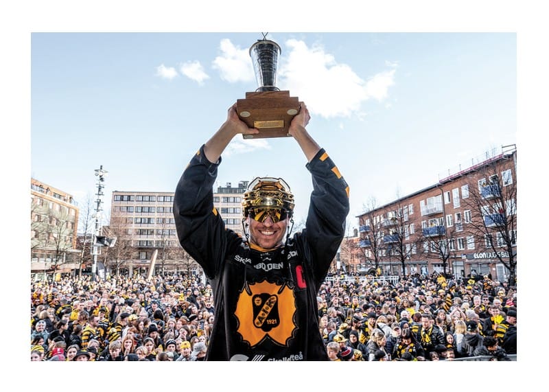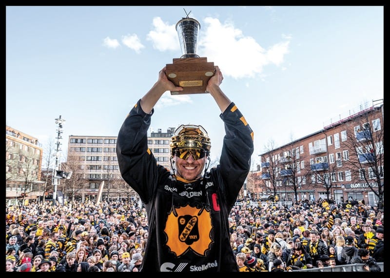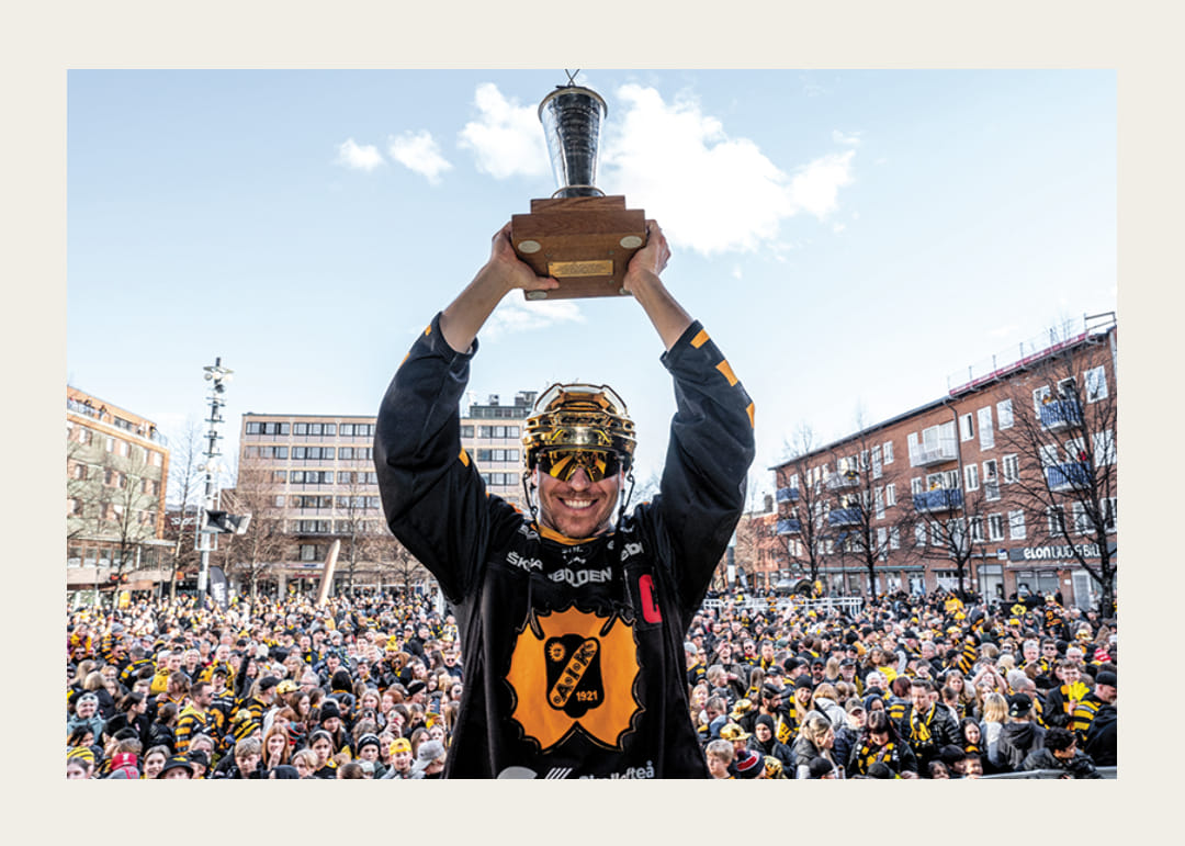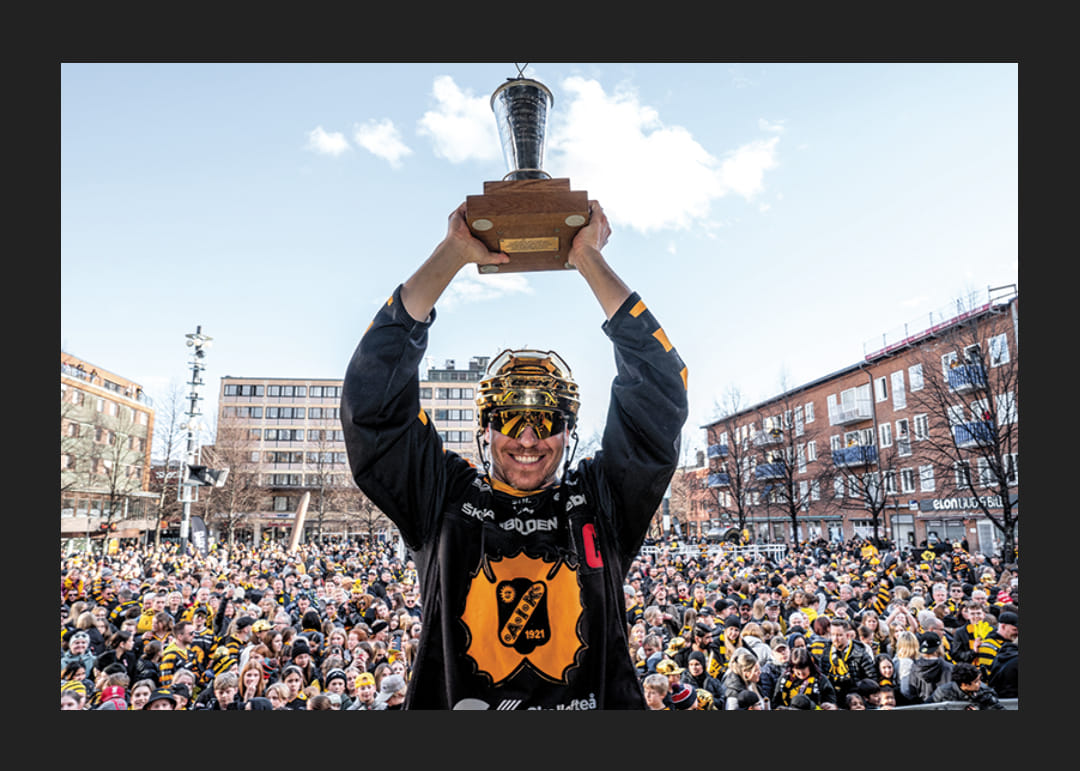 Skellefteås Pär Lindholm under guldhyllningar av Skellefteå efter SM-guldet den 30 april 2024 i Skellefteå.