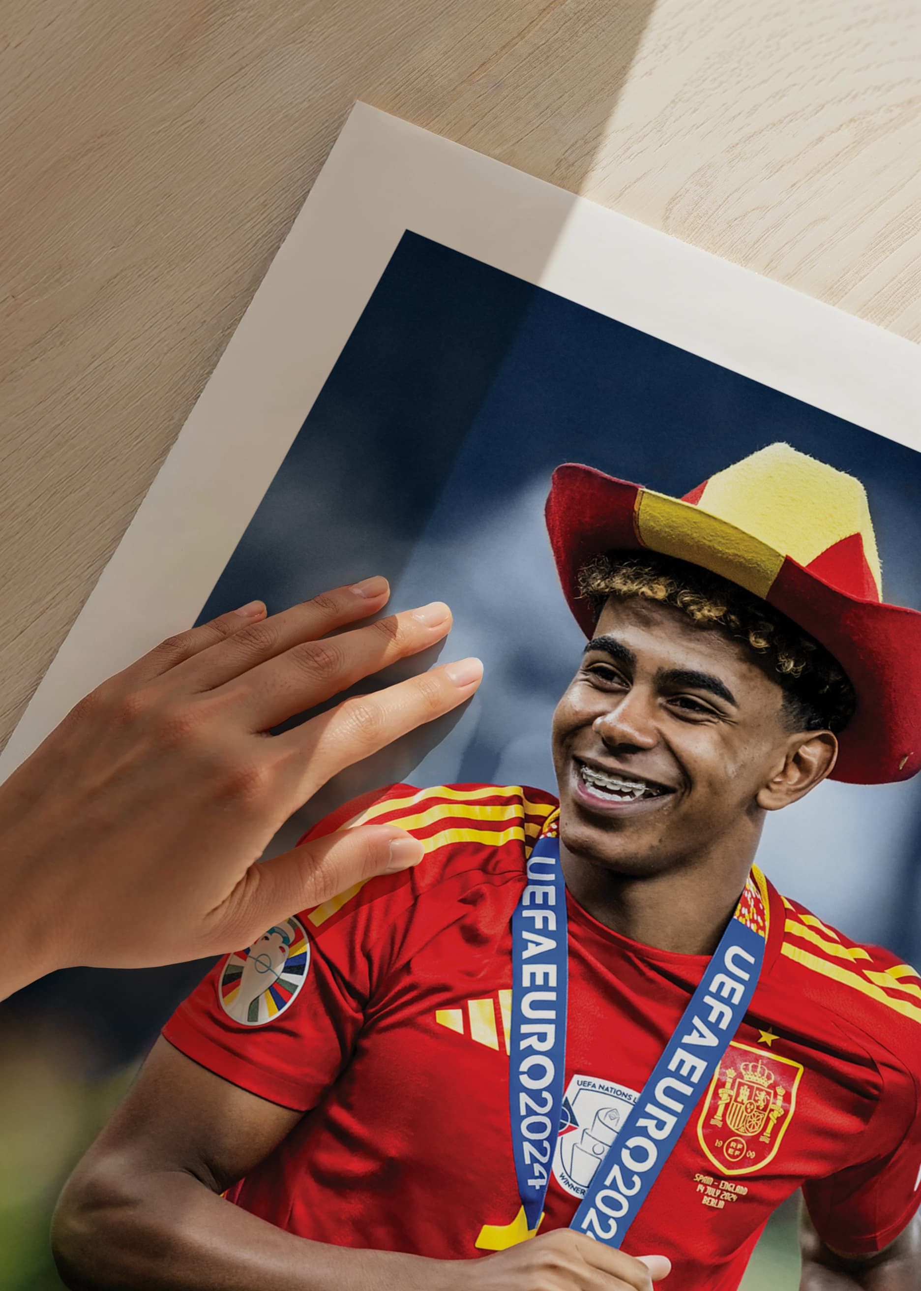 Lamine Yamal från Spanien firar efter UEFA Euro 2024 Football Championship finalen mellan Spanien och England den 14 juli 2024 i Berlin.