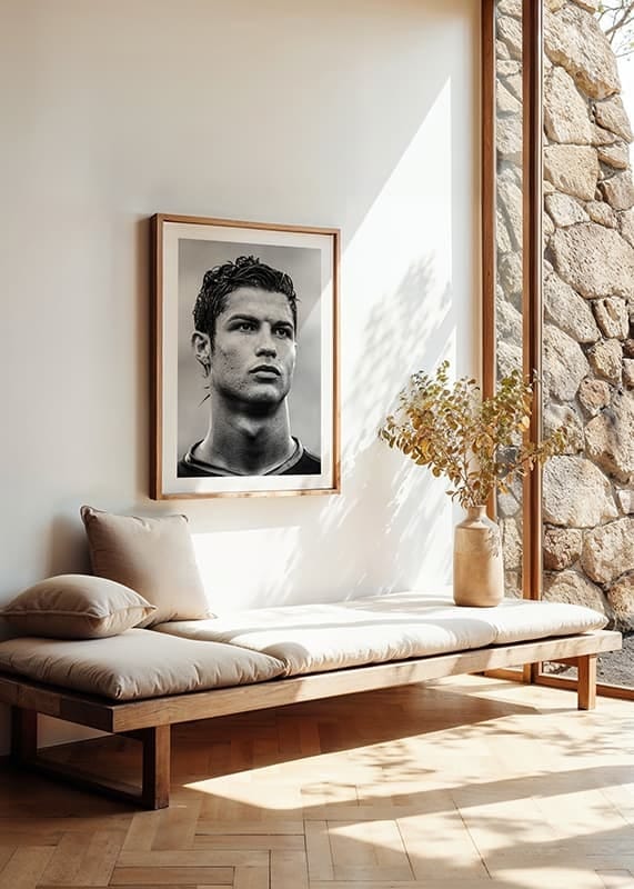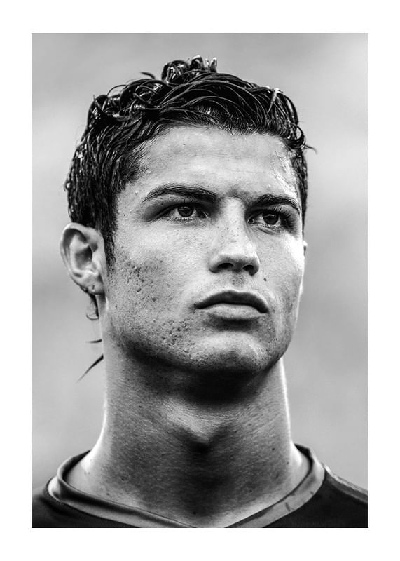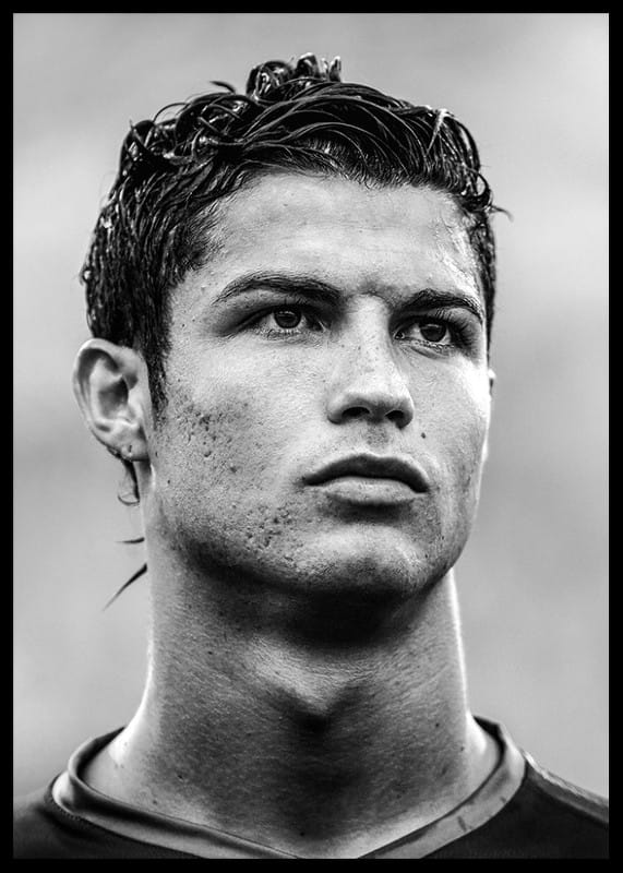 En ikonisk poster som fångar ett historiskt ögonblick i fotbollsvärlden. Det svartvita fotografiet visar Cristiano Ronaldo i Portugals landslagströja under fotbolls-VM i Tyskland 2006 – en tid då en framtida legend tog sina första stora kliv på den internationella scenen. Ett måste för alla fotbollsfans och Ronaldo-beundrare. Perfekt att hänga i sporthörnan, ungdomsrummet eller träningsrummet. En del av vår kollektion med sportposters som hyllar oförglömliga ögonblick och världsstjärnor.