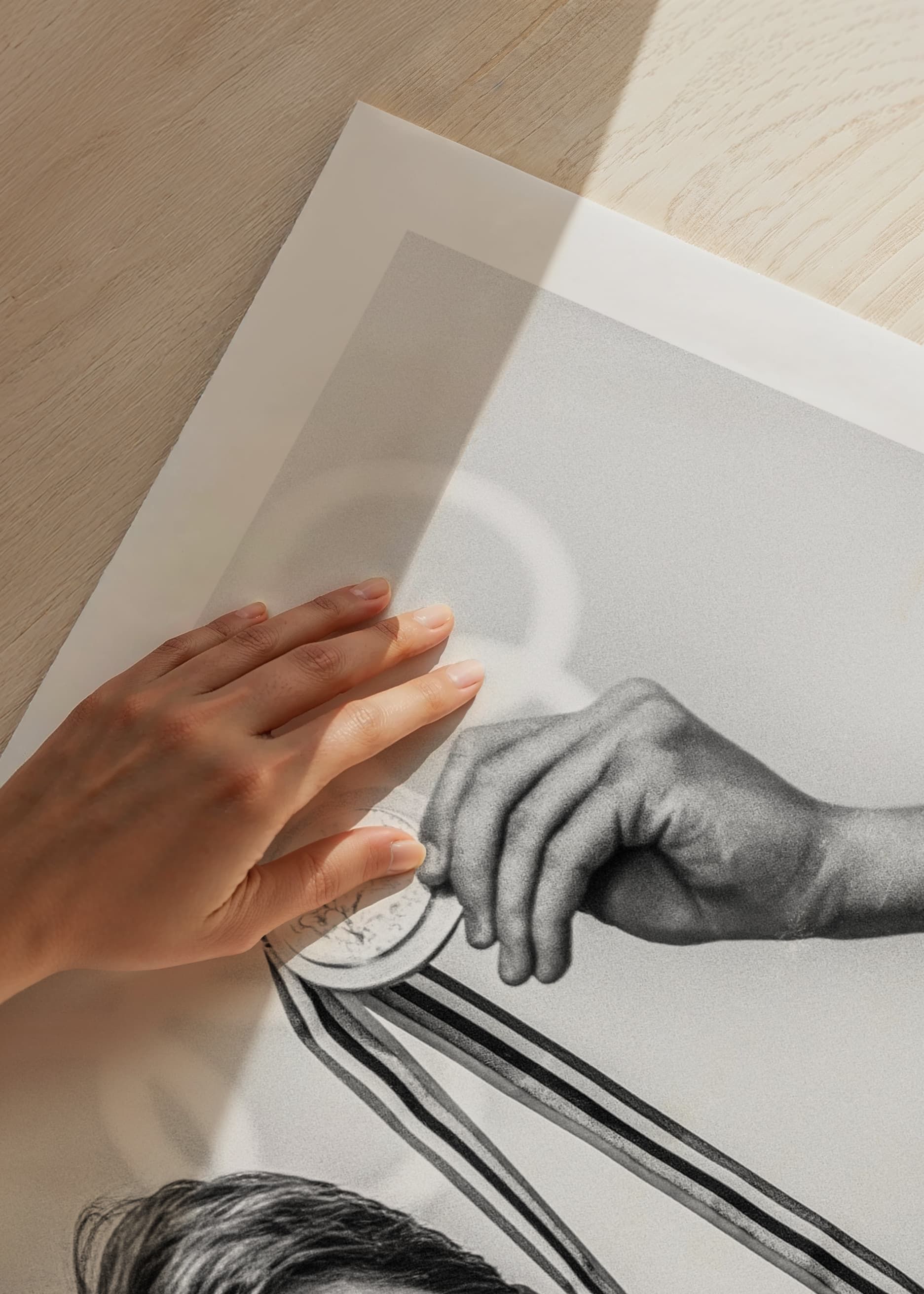 Vi trycker våra posters på 200 grams matt papper av högsta kvalitet från det franska pappersbruket Clairefontaine. Pappret är miljöcertifierat FSC och produktionen Svanen/EU Ecolabel-märkt.