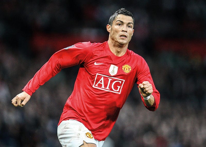 Poster med ett fotografi på portugisiske fotbollsstjärnan Cristiano Ronaldo i Manchester United år 2009.
