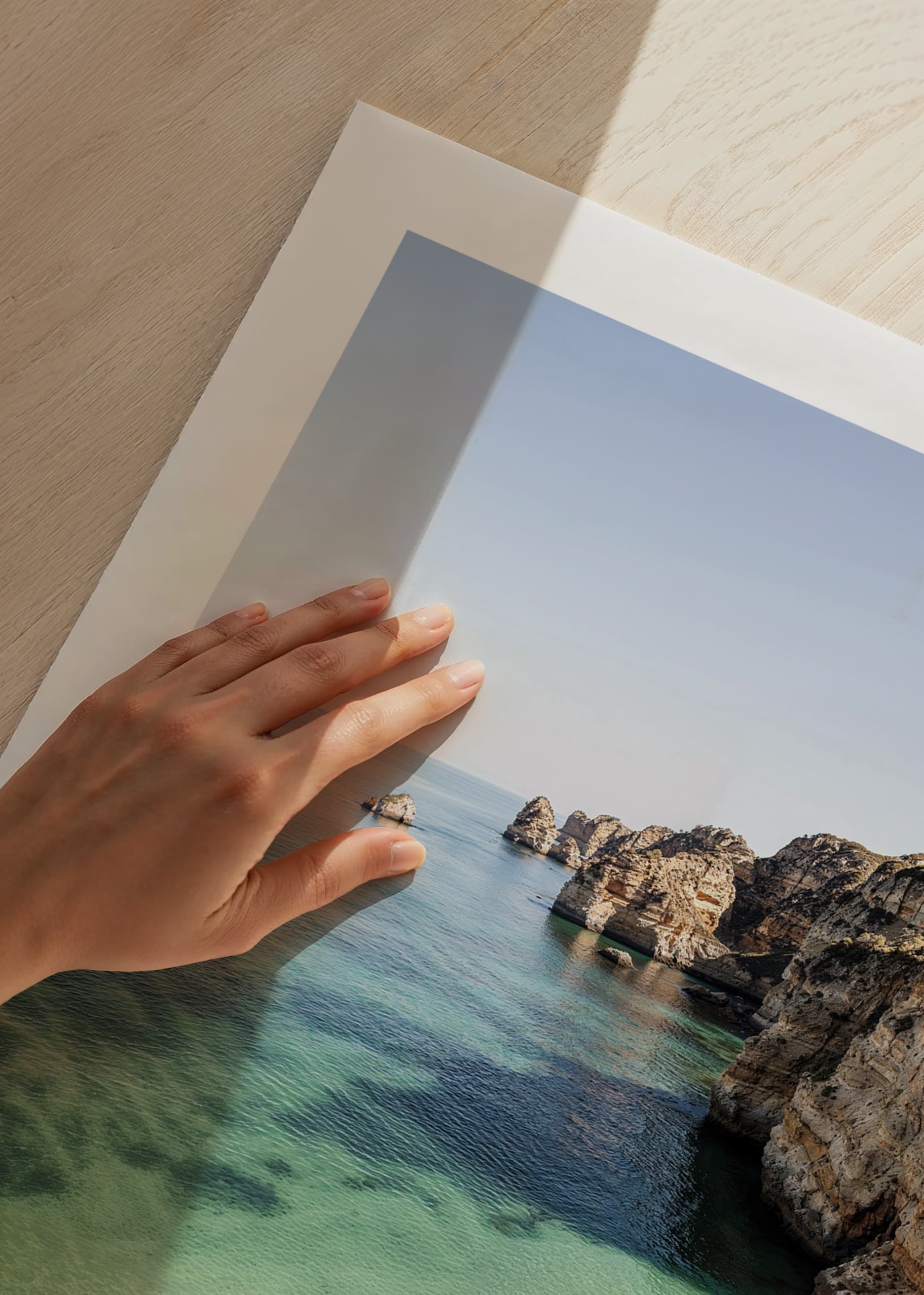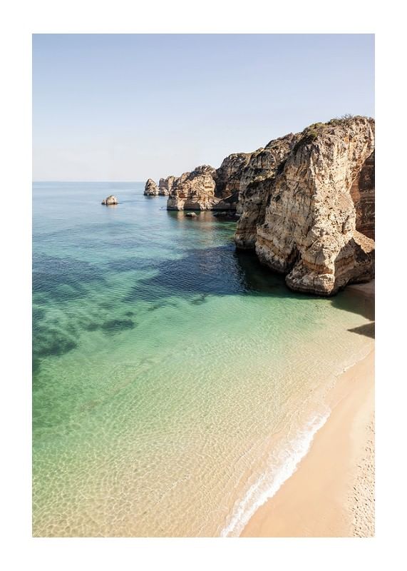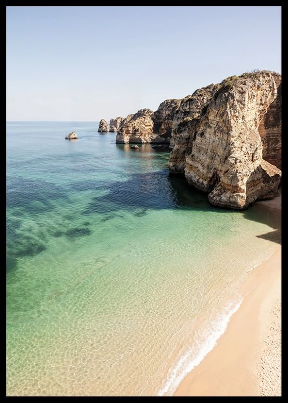 Upplev den natursköna skönheten med denna fantastiska poster av en avskild strand omgiven av dramatiska klippor och kristallklart vatten. Perfekt för att skapa en känsla av lugn och äventyr i ditt hem. Låt varje dag vara en påminnelse om naturens underverk.