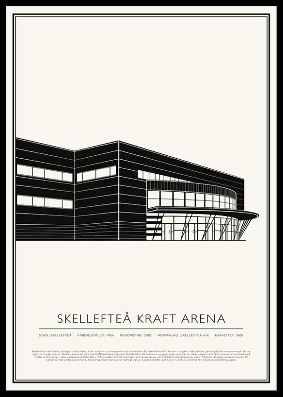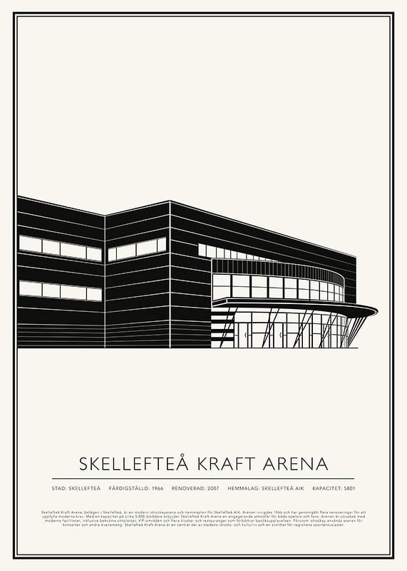 Skellefteå Kraft Arena, belägen i Skellefteå, är en modern ishockeyarena och hemmaplan för Skellefteå AIK. Arenan invigdes 1966 och har genomgått flera renoveringar för att uppfylla moderna krav. Med en kapacitet på cirka 5 800 åskådare erbjuder Skellefteå Kraft Arena en engagerande atmosfär för både spelare och fans. Arenan är utrustad med moderna faciliteter, inklusive bekväma sittplatser, VIP-områden och flera kiosker och restauranger som förbättrar besöksupplevelsen. Förutom ishockey används arenan för konserter och andra evenemang. Skellefteå Kraft Arena är en central del av stadens idrotts- och kulturliv och en stolthet för regionens sportentusiaster.