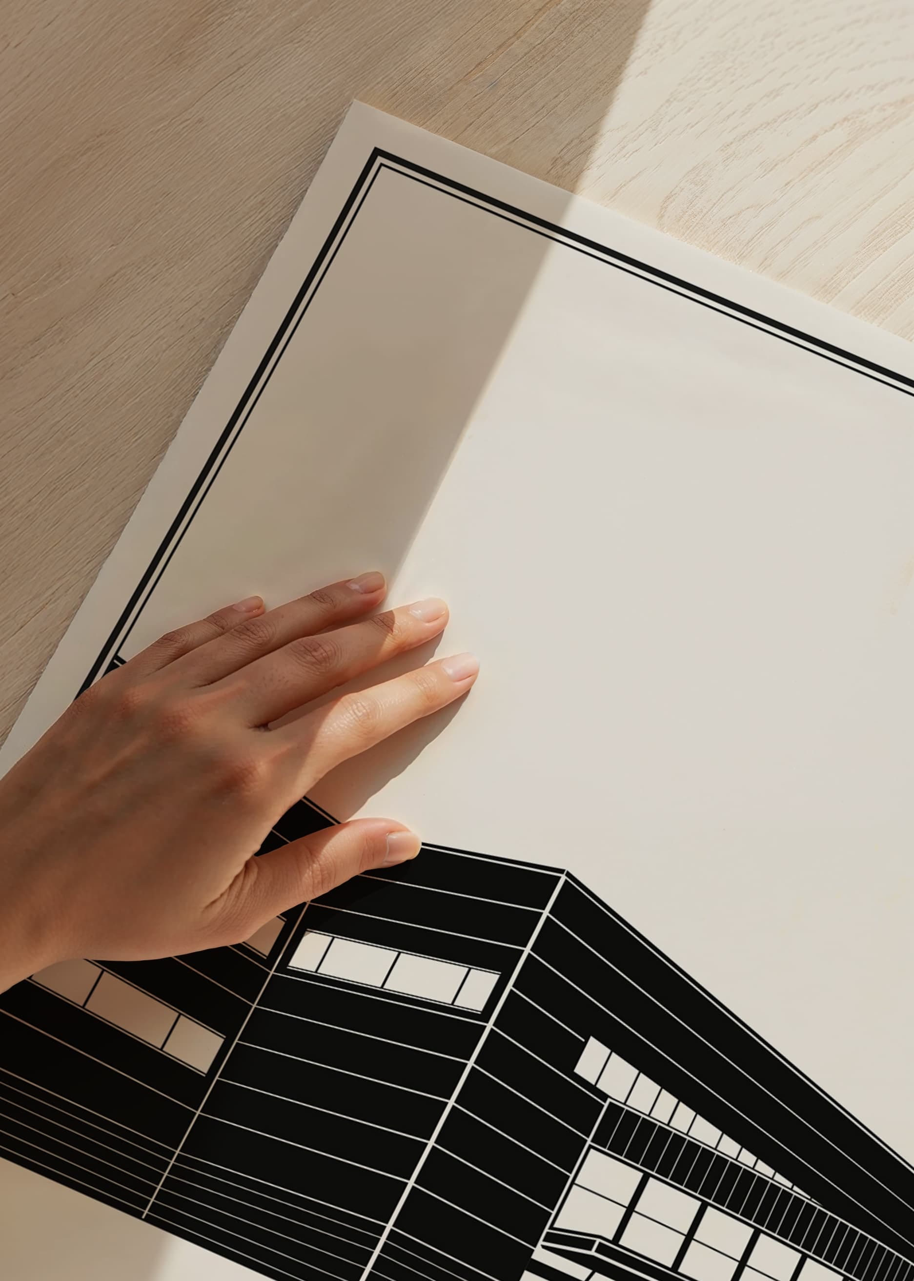 Vi trycker våra posters på 200 grams matt papper av högsta kvalitet från det franska pappersbruket Clairefontaine. Pappret är miljöcertifierat FSC och produktionen Svanen/EU Ecolabel-märkt.