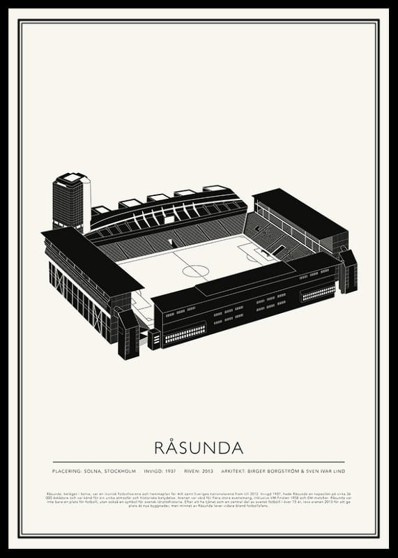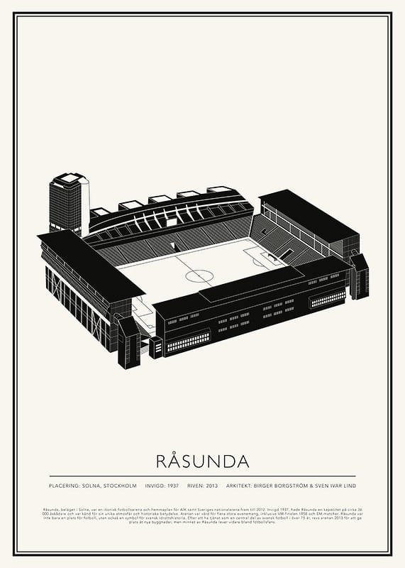 Råsunda, beläget i Solna, var en ikonisk fotbollsarena och hemmaplan för AIK samt Sveriges nationalarena fram till 2012. Invigd 1937, hade Råsunda en kapacitet på cirka 36 000 åskådare och var känd för sin unika atmosfär och historiska betydelse. Arenan var värd för flera stora evenemang, inklusive VM-finalen 1958 och EM-matcher. Råsunda var inte bara en plats för fotboll, utan också en symbol för svensk idrottshistoria. Efter att ha tjänat som en central del av svensk fotboll i över 75 år, revs arenan 2013 för att ge plats åt nya byggnader, men minnet av Råsunda lever vidare bland fotbollsfans.