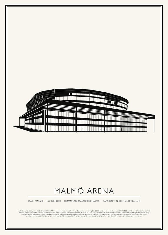 Malmö Arena, belägen i stadsdelen Hyllie i Malmö, är en modern och mångsidig arena som invigdes 2008. Med en kapacitet på upp till 15 500 åskådare vid konserter och 12 600 vid ishockeymatcher, är den hemmaplan för ishockeylaget Malmö Redhawks. Arenan är känd för sin utmärkta akustik och bekväma sittplatser, vilket ger en förstklassig upplevelse för både sport- och musikevenemang. Malmö Arena har även moderna faciliteter, inklusive restauranger, konferensutrymmen och VIP-områden. Förutom sportevenemang och konserter används arenan för mässor, konferenser och andra stora evenemang, vilket gör den till en central mötesplats i regionen.