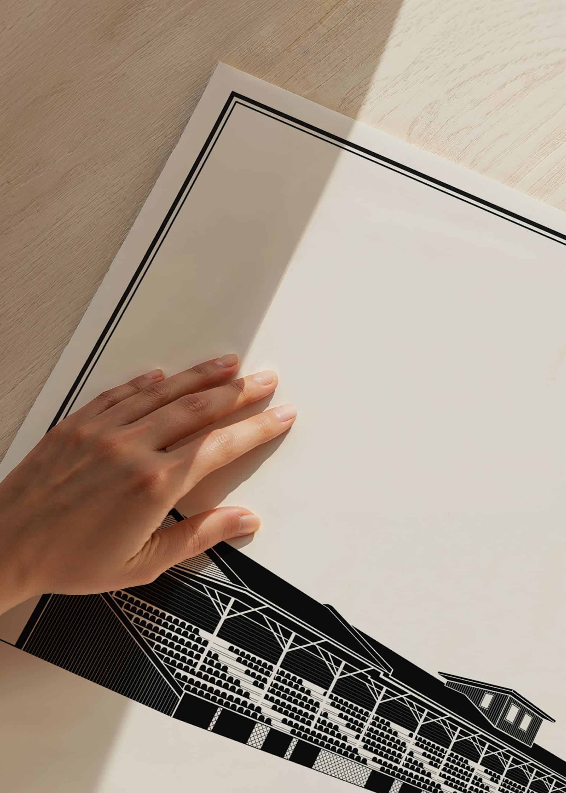 Vi trycker våra posters på 200 grams matt papper av högsta kvalitet från det franska pappersbruket Clairefontaine. Pappret är miljöcertifierat FSC och produktionen Svanen/EU Ecolabel-märkt.