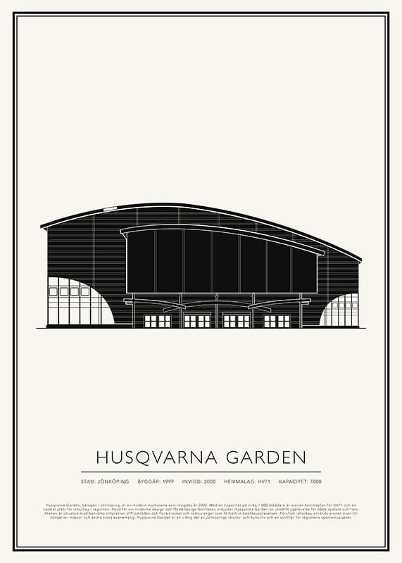 Husqvarna Garden, belägen i Jönköping, är en modern multiarena som invigdes år 2000. Med en kapacitet på cirka 7 000 åskådare är arenan hemmaplan för HV71 och en central plats för ishockey i regionen. Känd för sin moderna design och förstklassiga faciliteter, erbjuder Husqvarna Garden en utmärkt upplevelse för både spelare och fans. Arenan är utrustad med bekväma sittplatser, VIP-områden och flera kiosker och restauranger som förbättrar besöksupplevelsen. Förutom ishockey används arenan även för konserter, mässor och andra stora evenemang. Husqvarna Garden är en viktig del av Jönköpings idrotts- och kulturliv och en stolthet för regionens sportentusiaster.