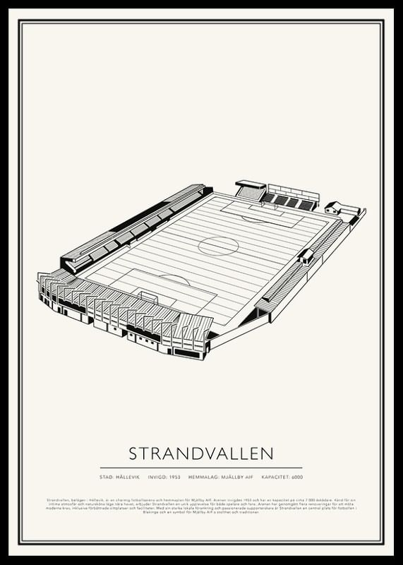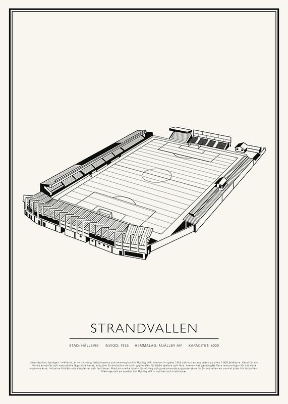 Strandvallen, belägen i Hällevik, är en charmig fotbollsarena och hemmaplan för Mjällby AIF. Arenan invigdes 1953 och har en kapacitet på cirka 7 000 åskådare. Känd för sin intima atmosfär och natursköna läge nära havet, erbjuder Strandvallen en unik upplevelse för både spelare och fans. Arenan har genomgått flera renoveringar för att möta moderna krav, inklusive förbättrade sittplatser och faciliteter. Med sin starka lokala förankring och passionerade supporterskara är Strandvallen en central plats för fotbollen i Blekinge och en symbol för Mjällby AIF:s stolthet och traditioner.