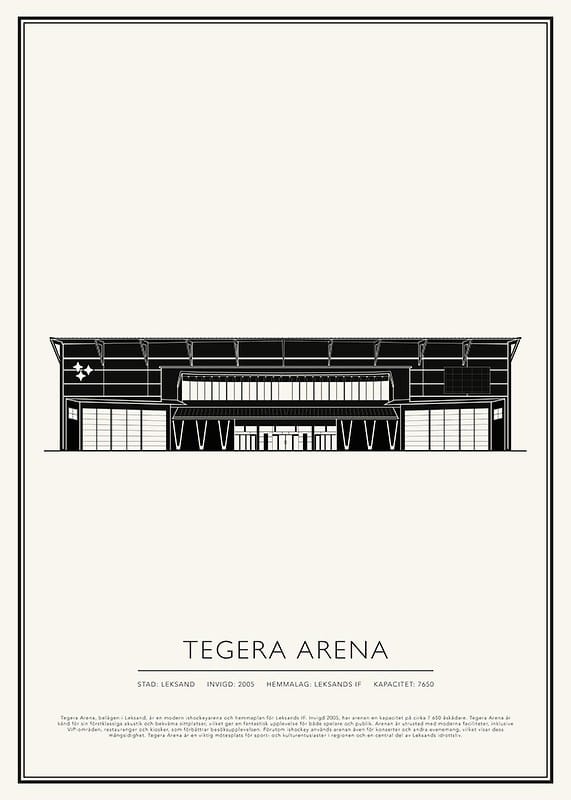 Tegera Arena, belägen i Leksand, är en modern ishockeyarena och hemmaplan för Leksands IF. Invigd 2005, har arenan en kapacitet på cirka 7 650 åskådare. Tegera Arena är känd för sin förstklassiga akustik och bekväma sittplatser, vilket ger en fantastisk upplevelse för både spelare och publik. Arenan är utrustad med moderna faciliteter, inklusive VIP-områden, restauranger och kiosker, som förbättrar besöksupplevelsen. Förutom ishockey används arenan även för konserter och andra evenemang, vilket visar dess mångsidighet. Tegera Arena är en viktig mötesplats för sport- och kulturentusiaster i regionen och en central del av Leksands idrottsliv.