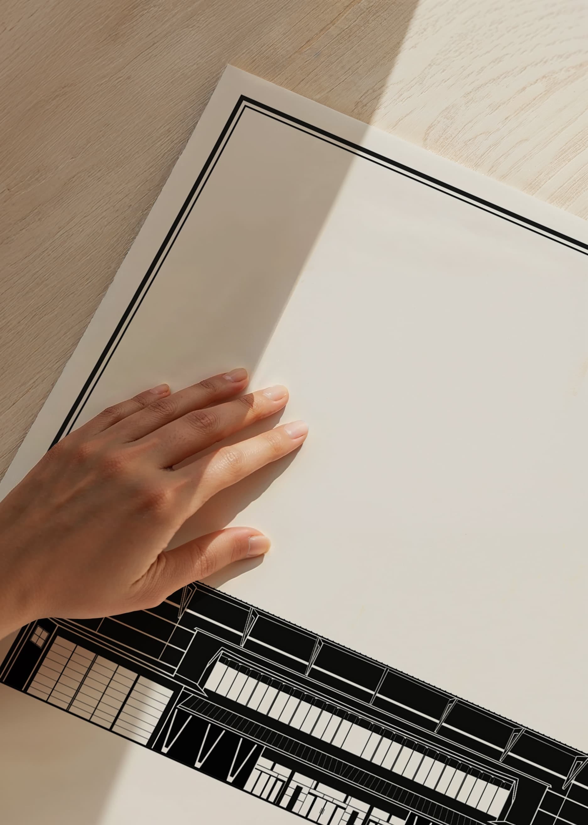Vi trycker våra posters på 200 grams matt papper av högsta kvalitet från det franska pappersbruket Clairefontaine. Pappret är miljöcertifierat FSC och produktionen Svanen/EU Ecolabel-märkt.