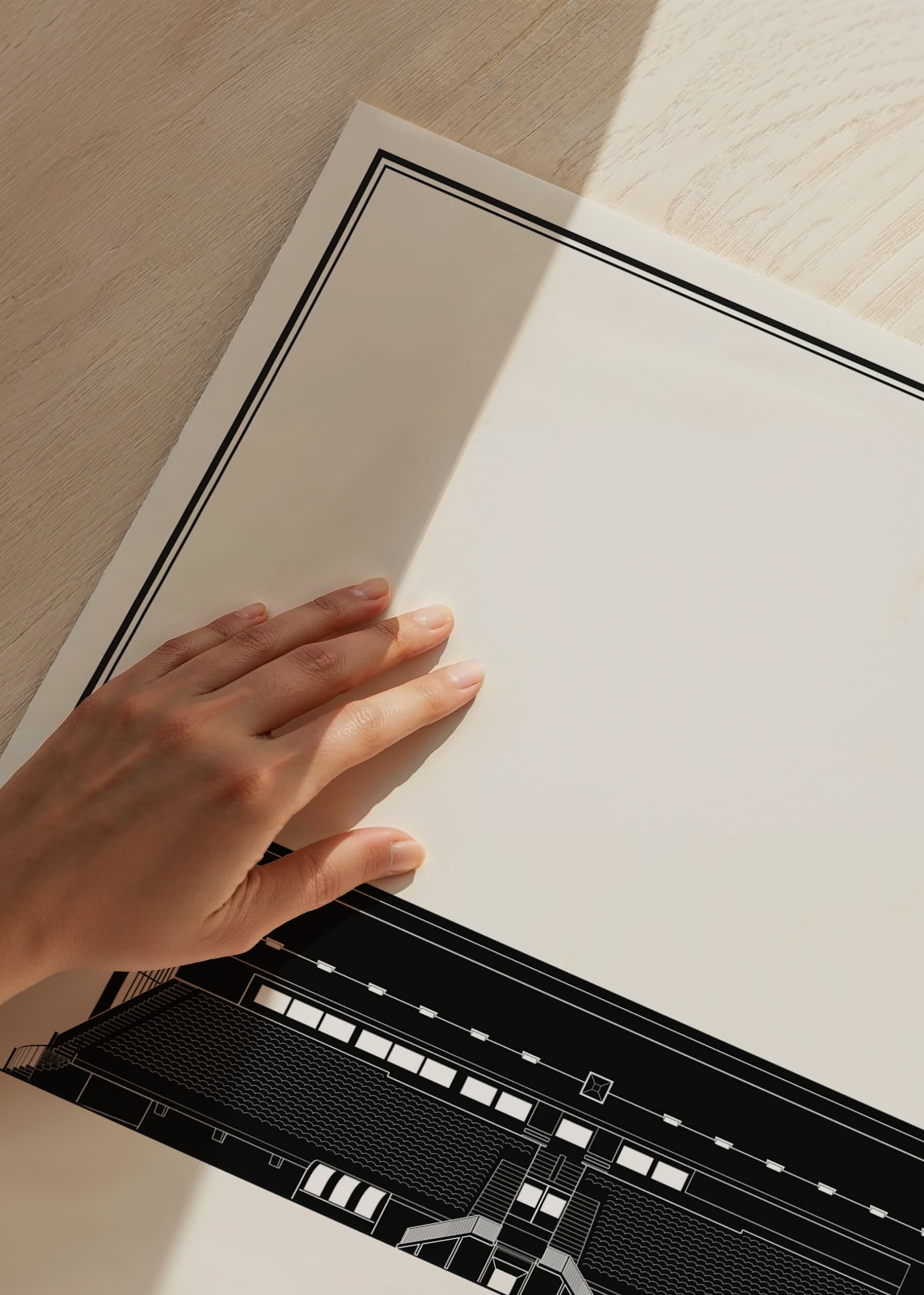 Vi trycker våra posters på 200 grams matt papper av högsta kvalitet från det franska pappersbruket Clairefontaine. Pappret är miljöcertifierat FSC och produktionen Svanen/EU Ecolabel-märkt.